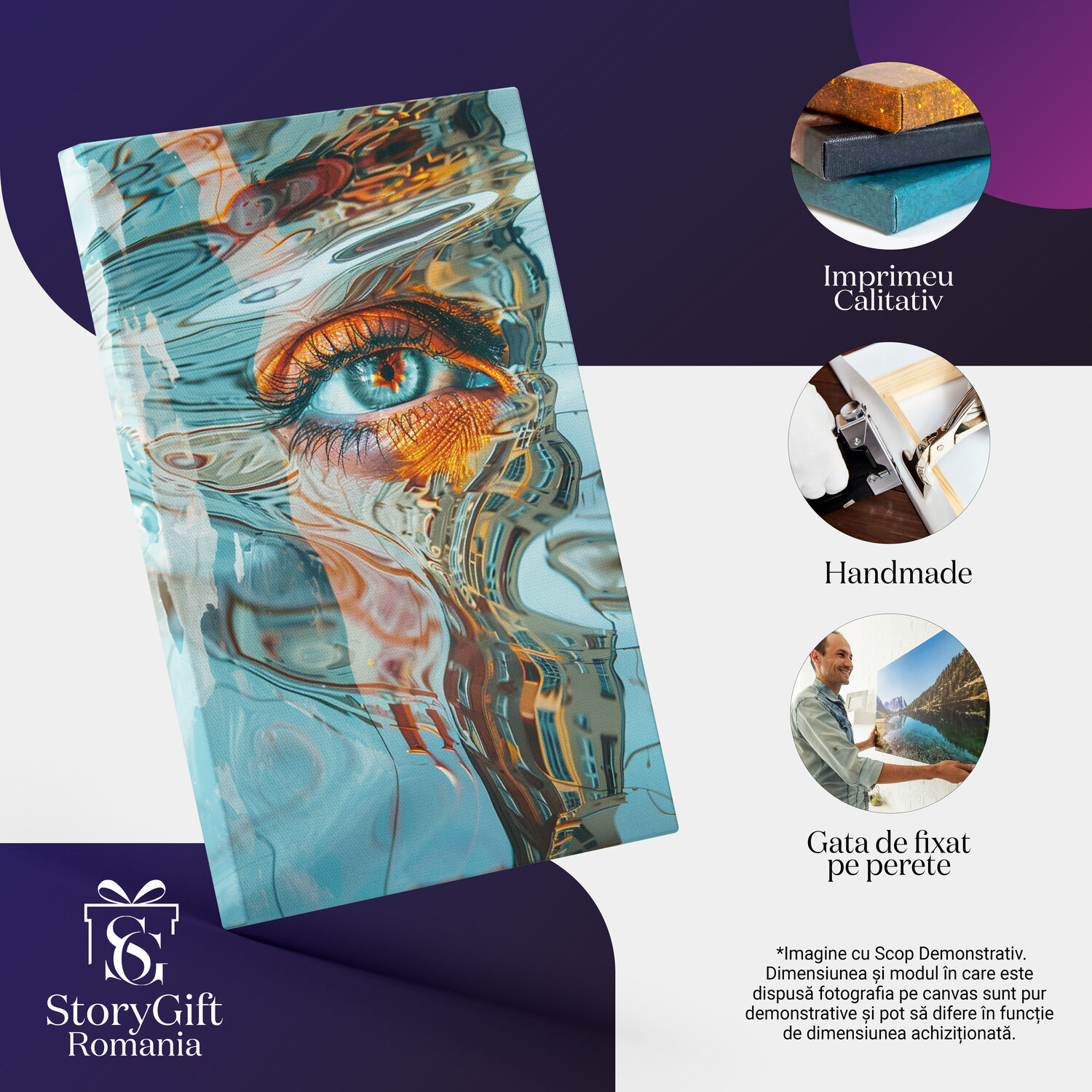 Notă importantă: Precizăm că imaginile de pe site au scop ilustrativ. Detaliile reale ale produsului pot prezenta diferențe minore față de reprezentările digitale, datorită variațiilor de culoare, mărimea tabloului și rezoluția dispozitivelor. Disponibilitatea în diverse dimensiuni ne permite să satisfacem nevoile dvs. specifice; pentru a vă asigura de alegerea potrivită, recomandăm măsurarea atentă a spațiului alocat.