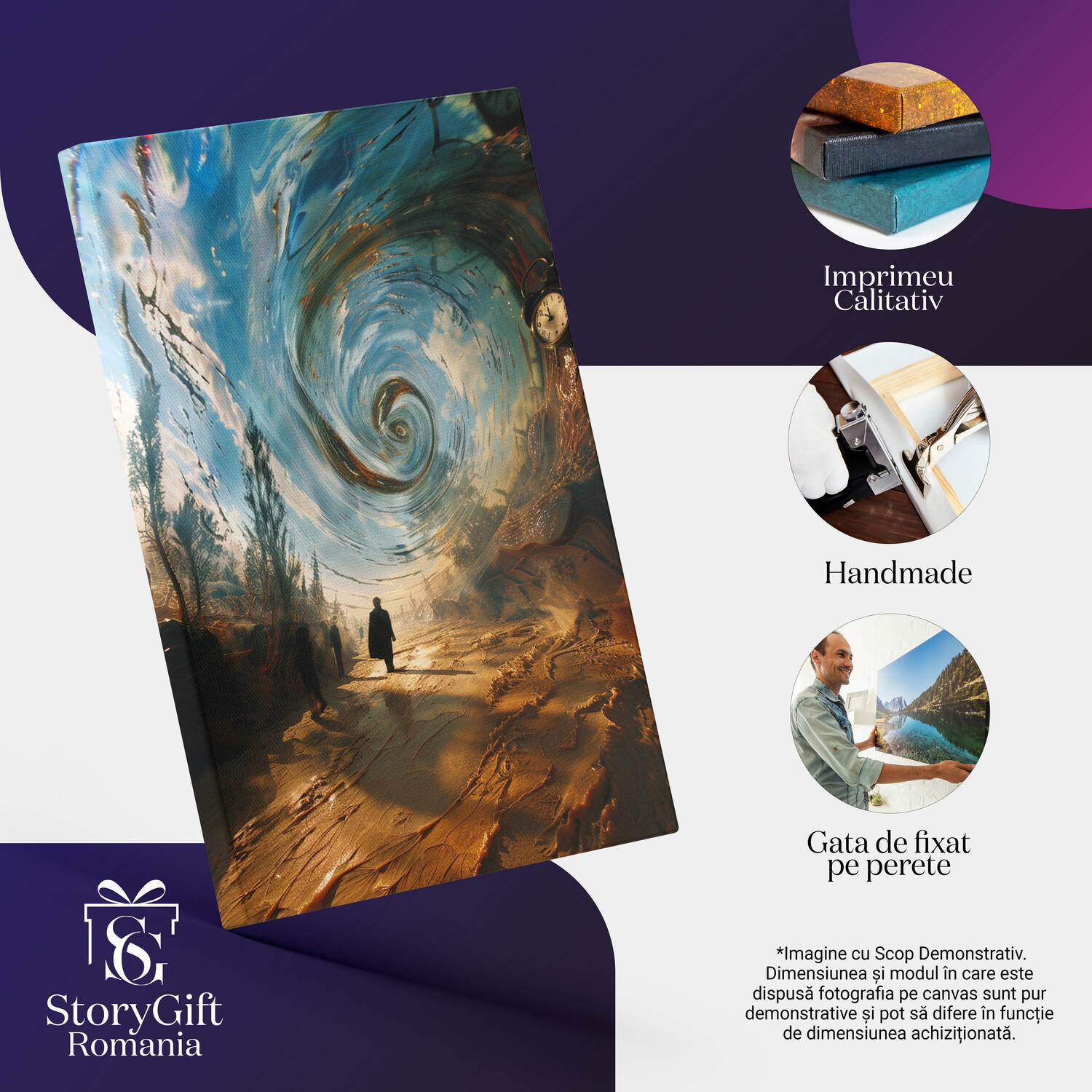 Notă importantă: Precizăm că imaginile de pe site au scop ilustrativ. Detaliile reale ale produsului pot prezenta diferențe minore față de reprezentările digitale, datorită variațiilor de culoare, mărimea tabloului și rezoluția dispozitivelor. Disponibilitatea în diverse dimensiuni ne permite să satisfacem nevoile dvs. specifice; pentru a vă asigura de alegerea potrivită, recomandăm măsurarea atentă a spațiului alocat.