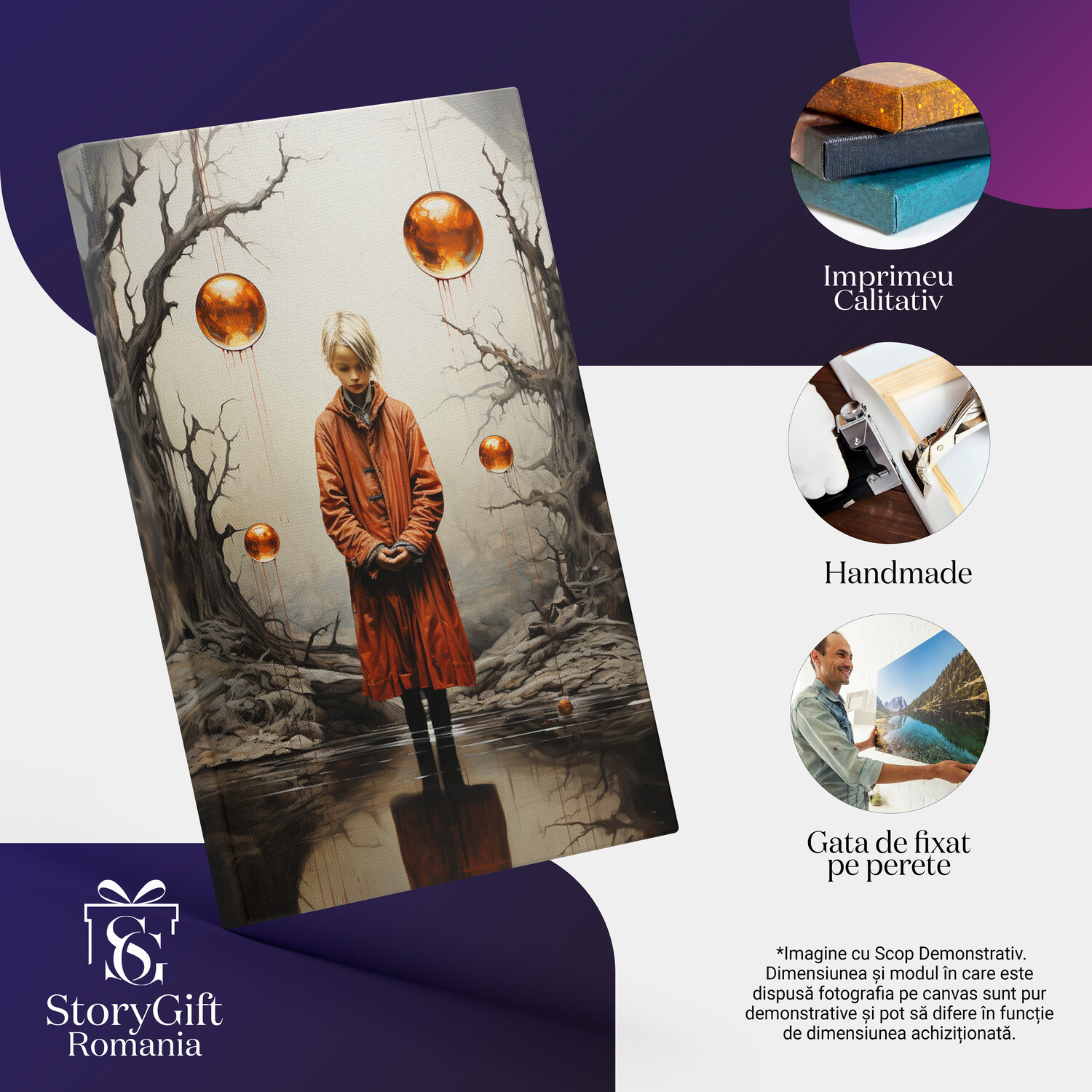 Tablou Canvas: Pictura cu o fetita blonda - abstract globuri Pictura Digitala - Tablou Canvas Signature de la StoryGift Romania