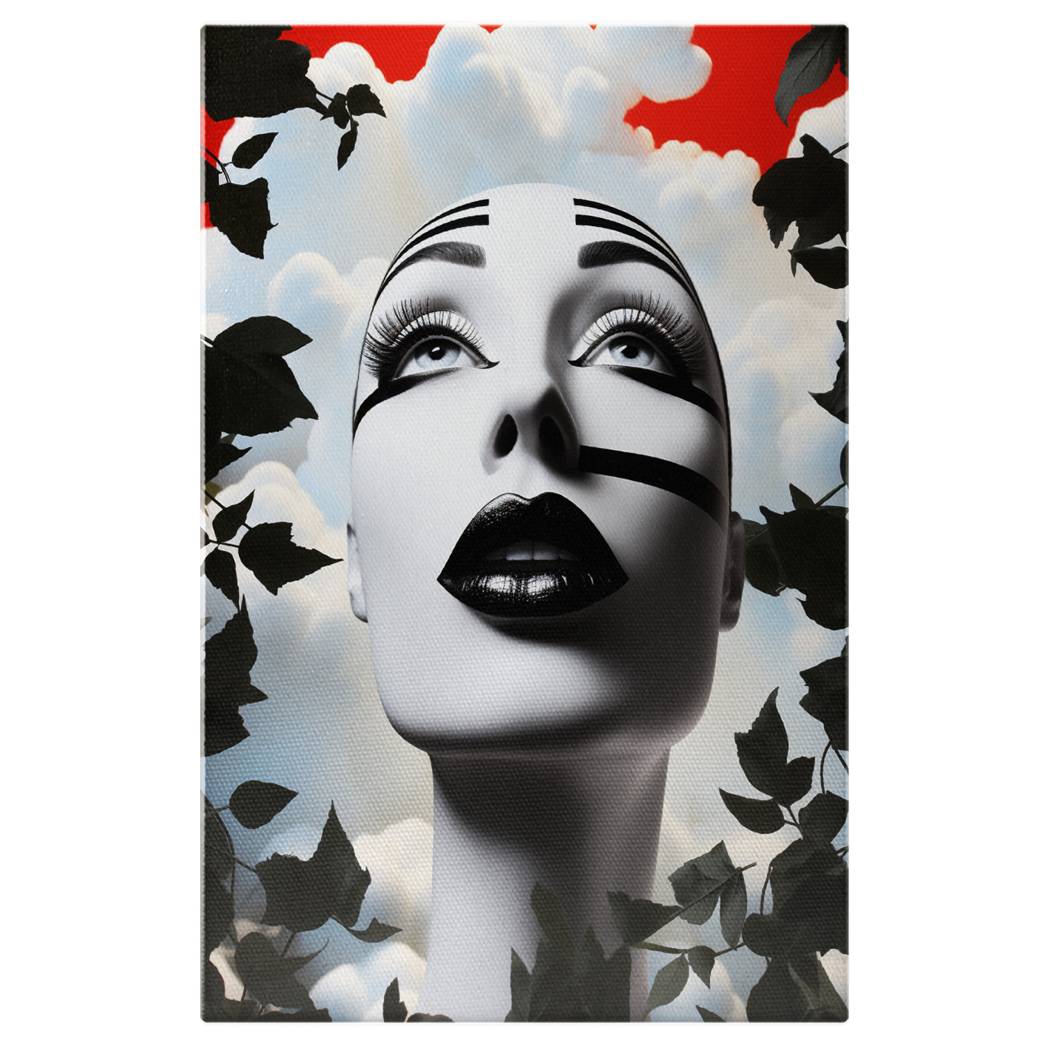 Tablou Canvas: Portret expresiv cu dungi Frumusete, Negru, rou, negru si alb Pictura Digitala - Tablou Canvas Signature de la StoryGift Romania
