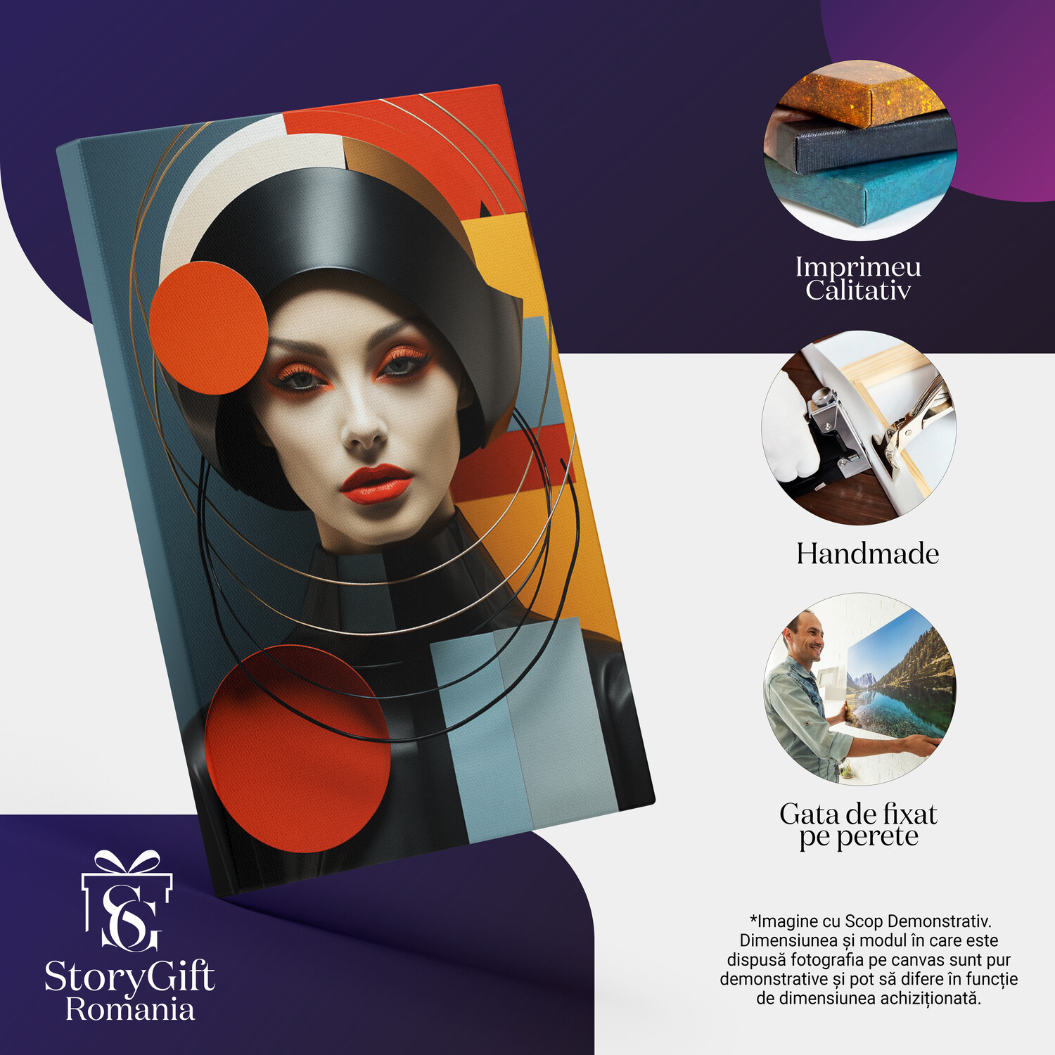 Tablou Canvas: Portret feminin palid - acoperamant tinuta neagra abstract Pictura Digitala - Tablou Canvas Signature de la StoryGift Romania