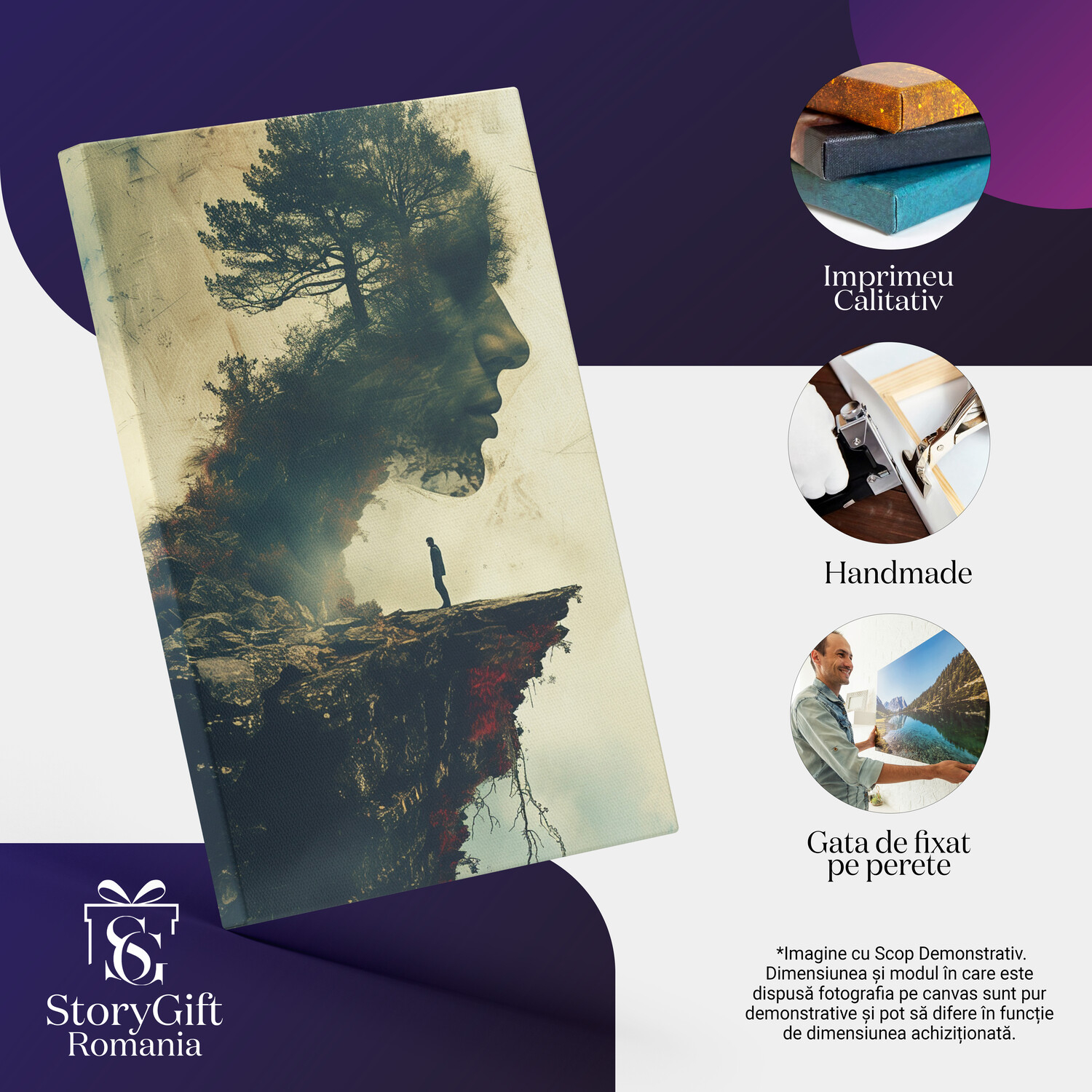 Tablou Canvas: Portret Natura, Chip din Profil si Personalitate pe Stanca, Tip Desen- Arta Pictura Digitala - Tablou Canvas Signature de la StoryGift Romania