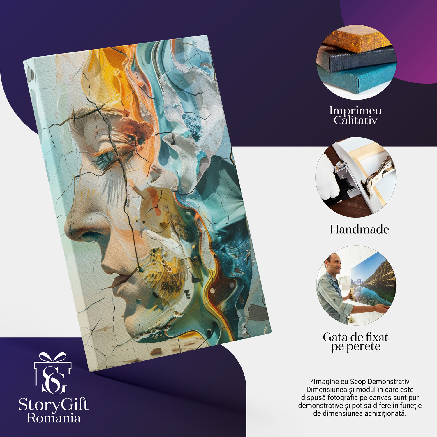 Tablou Canvas: Portret Psihologic Chip Uman in Multitudine de Culori cu Ochii Albastri si Gene Lungi Pictura Digitala - Tablou Canvas Signature de la StoryGift Romania