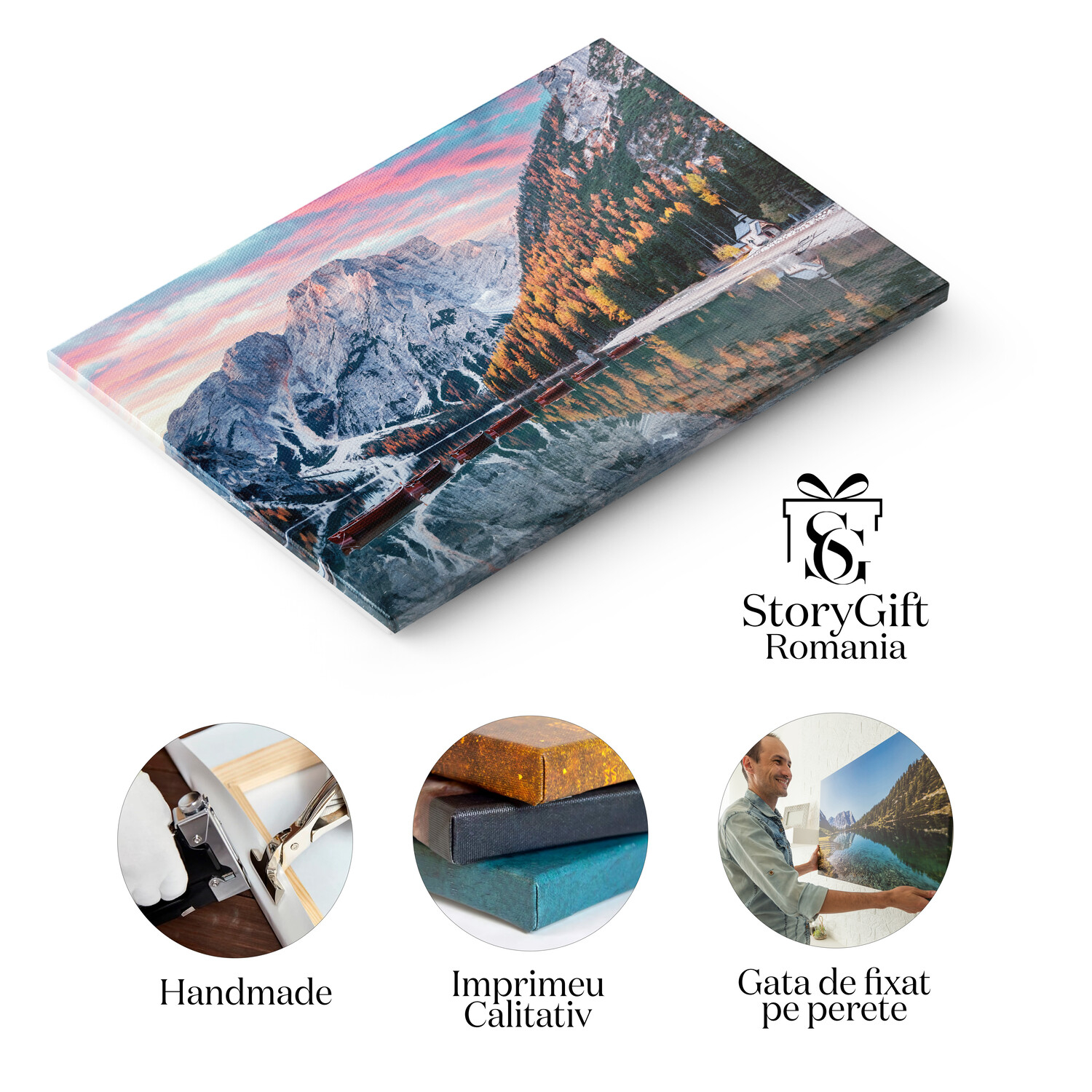 Tablou Canvas Lacul Braies in Dolomiti: mister si splendoare, lume de basm - Tablou Canvas Signature de la StoryGift Romania