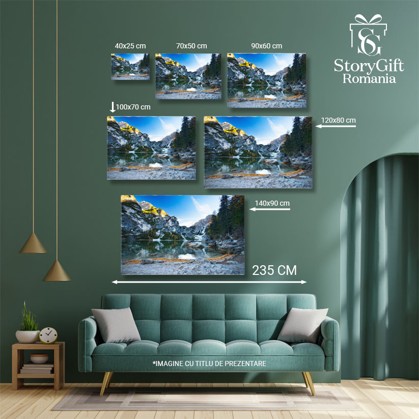 Tablou Canvas Lago de Braies in Culorile toamnei O Imbinare Armonioasa a Naturii cu Culoarea toamnei, O Escapada Perfecta in Peisajele Magice ale Italiei 40x25CM