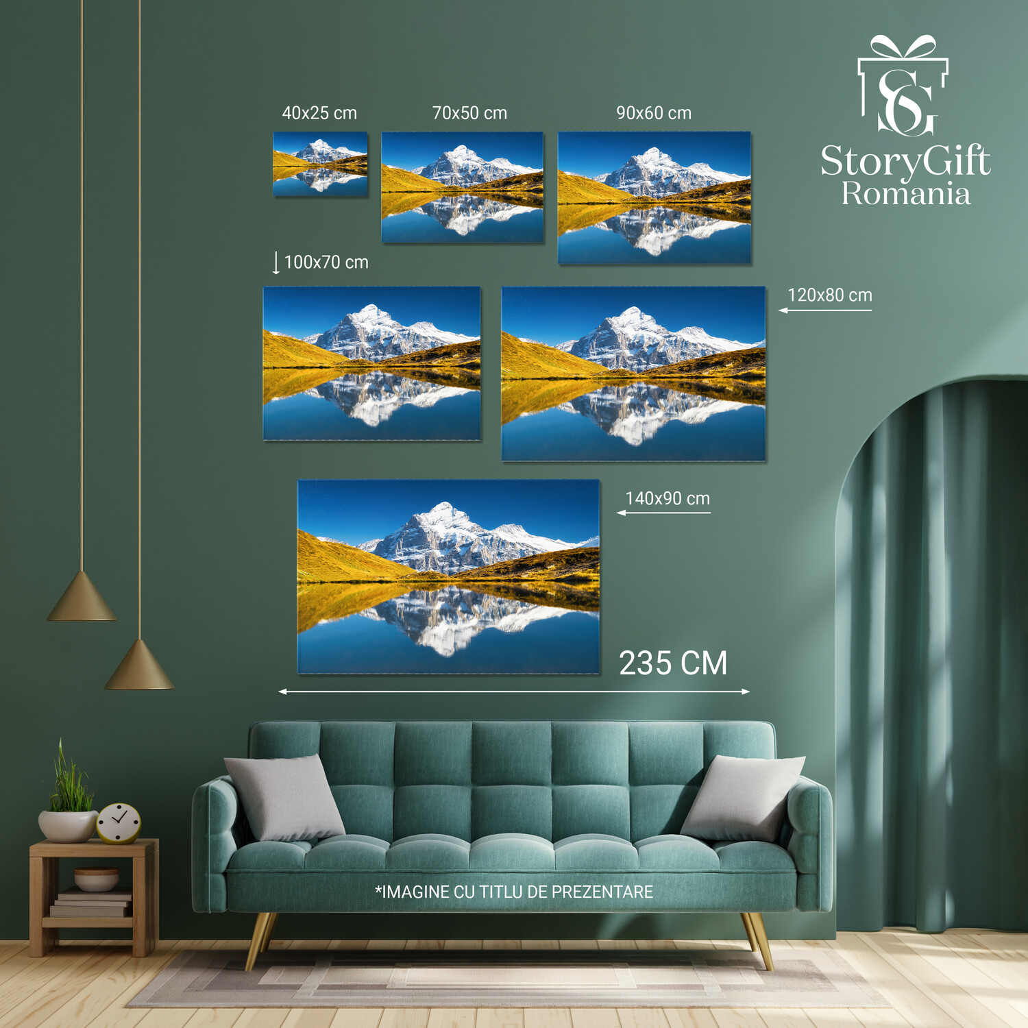 Notă importantă: Precizăm că imaginile de pe site au scop ilustrativ. Detaliile reale ale produsului pot prezenta diferențe minore față de reprezentările digitale, datorită variațiilor de culoare, mărimea tabloului și rezoluția dispozitivelor. Disponibilitatea în diverse dimensiuni ne permite să satisfacem nevoile dvs. specifice; pentru a vă asigura de alegerea potrivită, recomandăm măsurarea atentă a spațiului alocat.