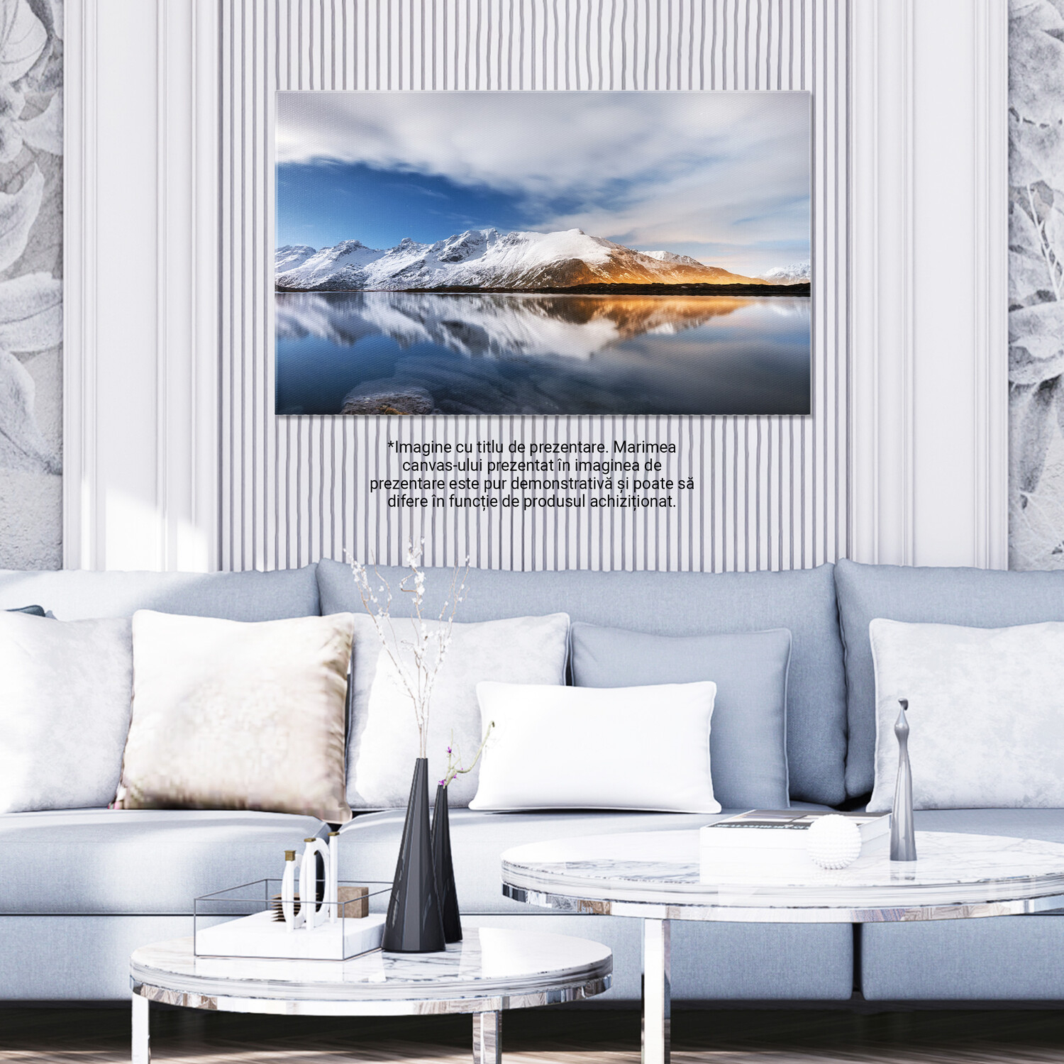 Tablou Canvas Peisaj de Iarna in Insulele Lofoten, Norvegia, Fjord, Munti,