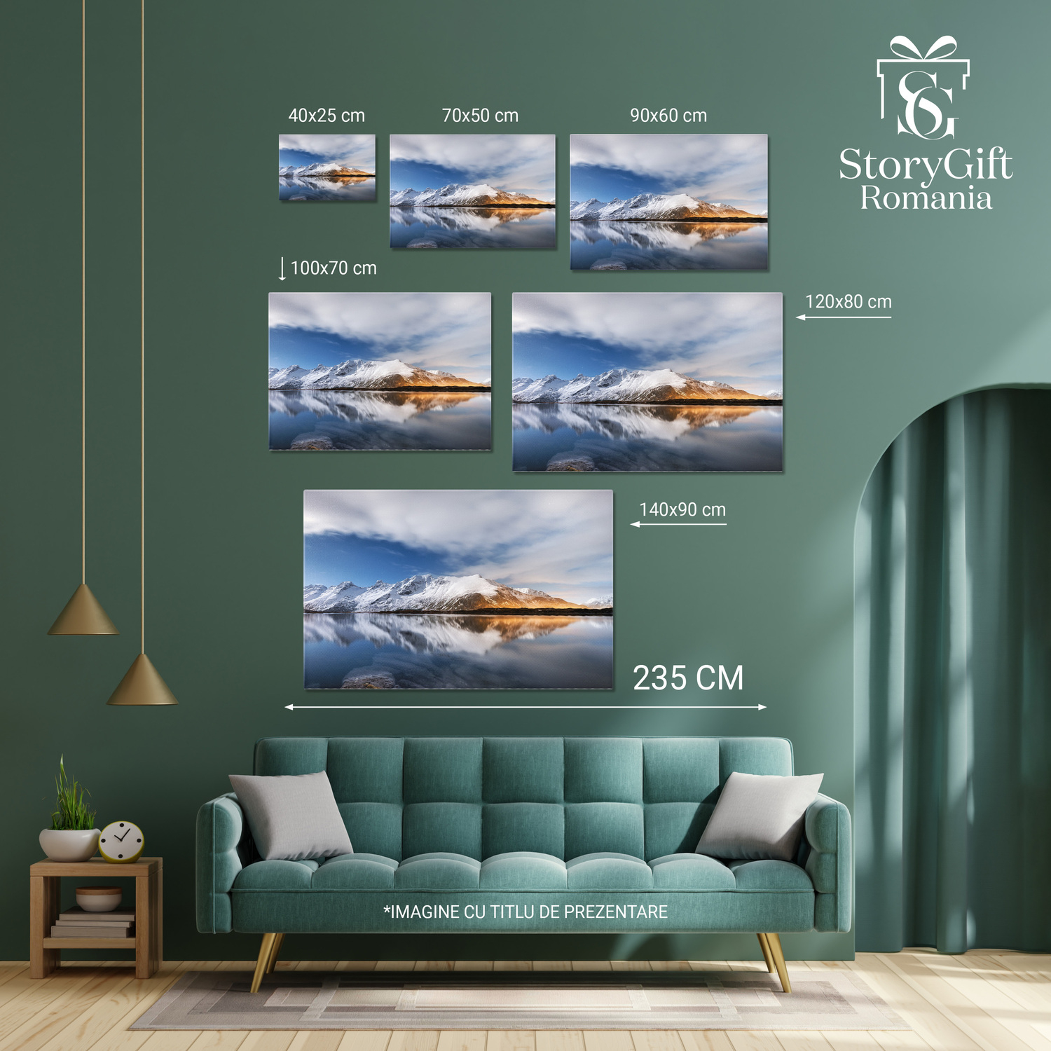 Notă importantă: Precizăm că imaginile de pe site au scop ilustrativ. Detaliile reale ale produsului pot prezenta diferențe minore față de reprezentările digitale, datorită variațiilor de culoare, mărimea tabloului și rezoluția dispozitivelor. Disponibilitatea în diverse dimensiuni ne permite să satisfacem nevoile dvs. specifice; pentru a vă asigura de alegerea potrivită, recomandăm măsurarea atentă a spațiului alocat.