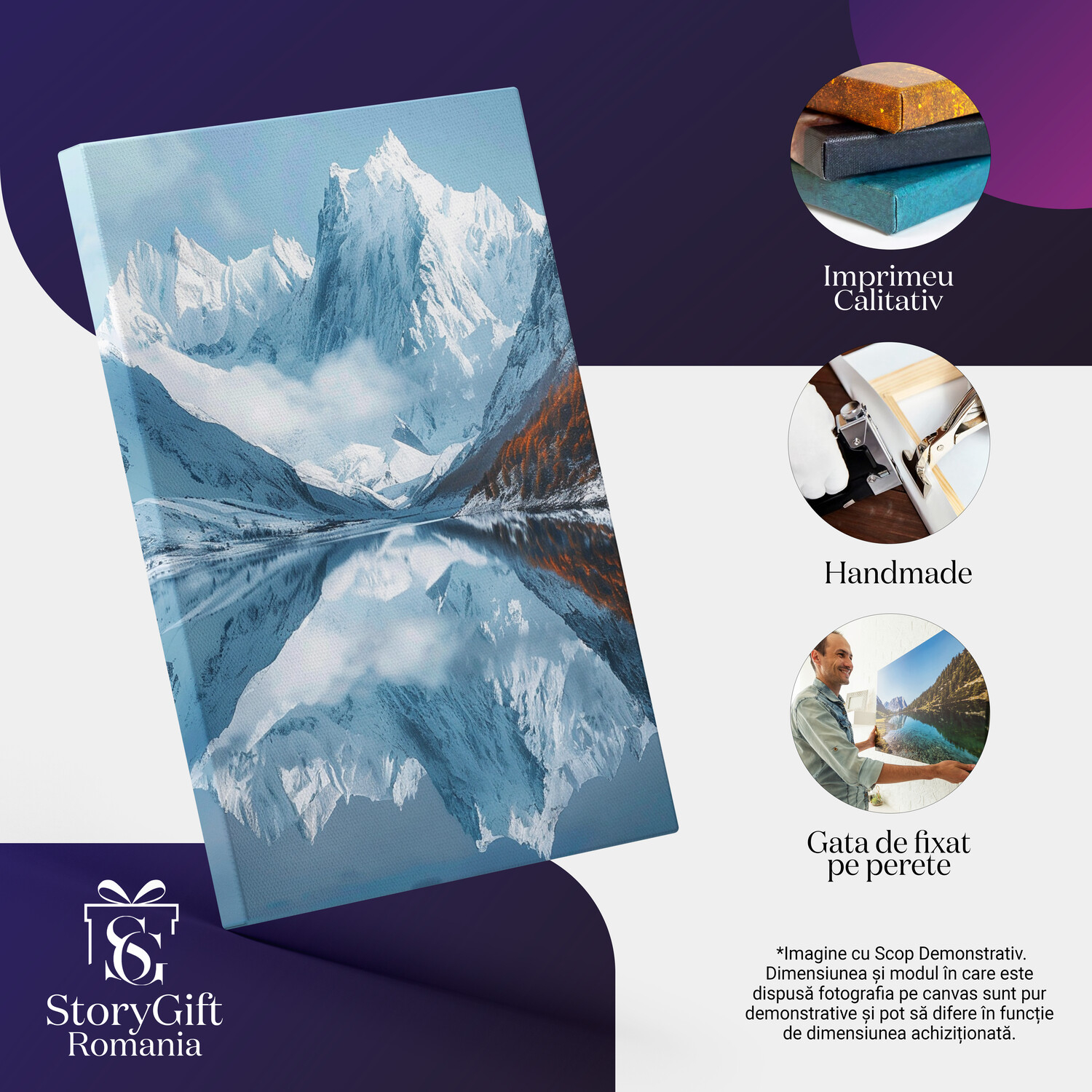 Tablou Canvas: Reflexia Formelor Naturii Iernatice Munti Inzapeziti se Oglindesc in Apa Pictura Digitala - Tablou Canvas Signature de la StoryGift Romania