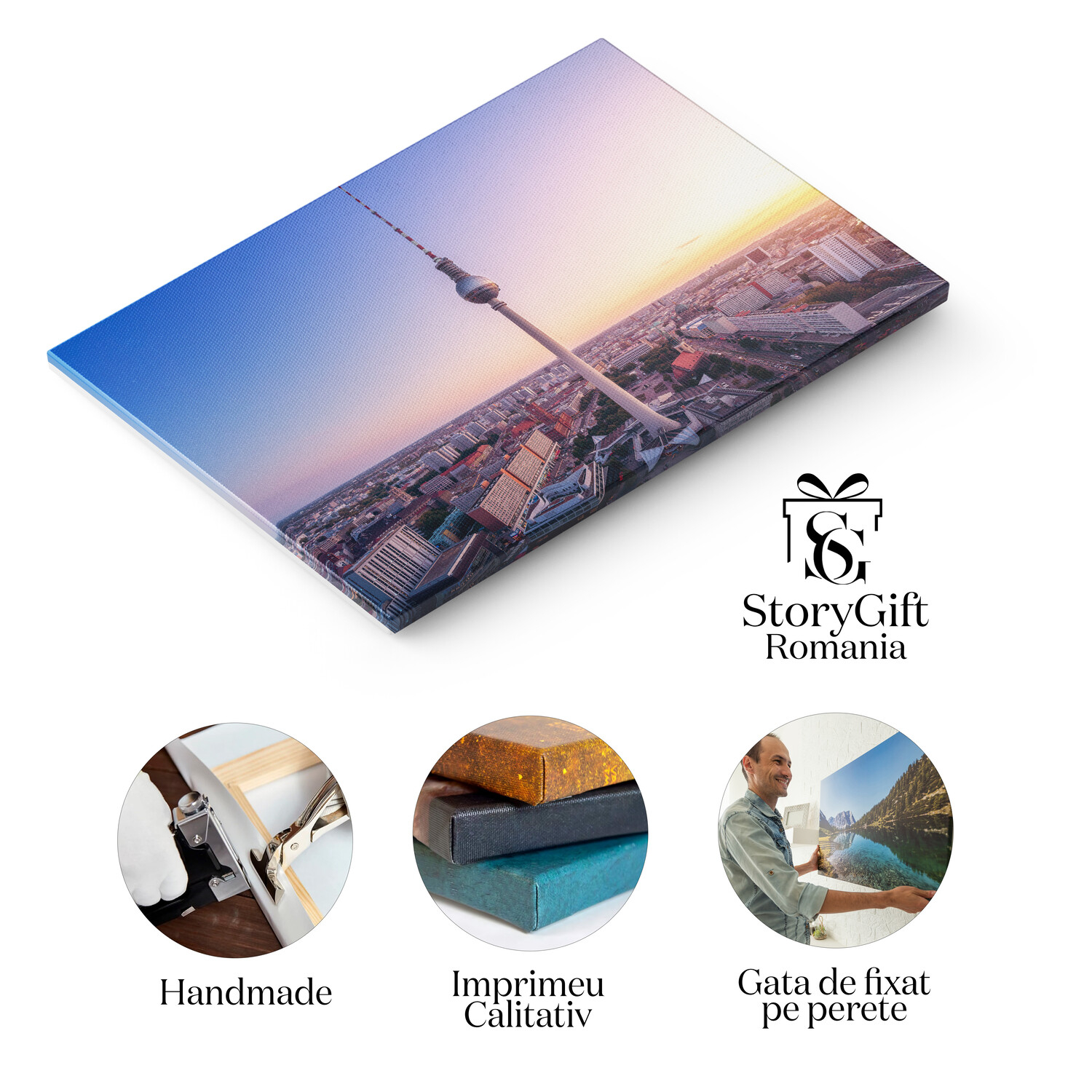 Tablou Canvas Vedere Aeriana a Berlinului cu Turnul de Televiziune aerian, Berlin, turnul de televiziune, arhitectura - Tablou Canvas Signature de la StoryGift Romania