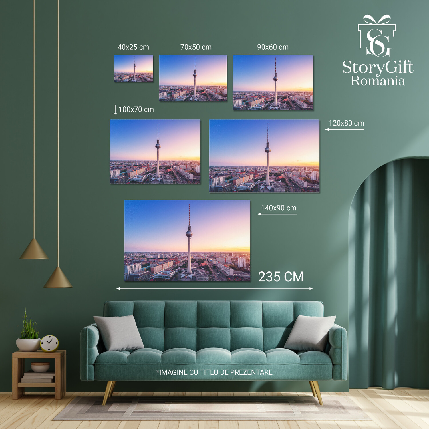 Notă importantă: Precizăm că imaginile de pe site au scop ilustrativ. Detaliile reale ale produsului pot prezenta diferențe minore față de reprezentările digitale, datorită variațiilor de culoare, mărimea tabloului și rezoluția dispozitivelor. Disponibilitatea în diverse dimensiuni ne permite să satisfacem nevoile dvs. specifice; pentru a vă asigura de alegerea potrivită, recomandăm măsurarea atentă a spațiului alocat.
