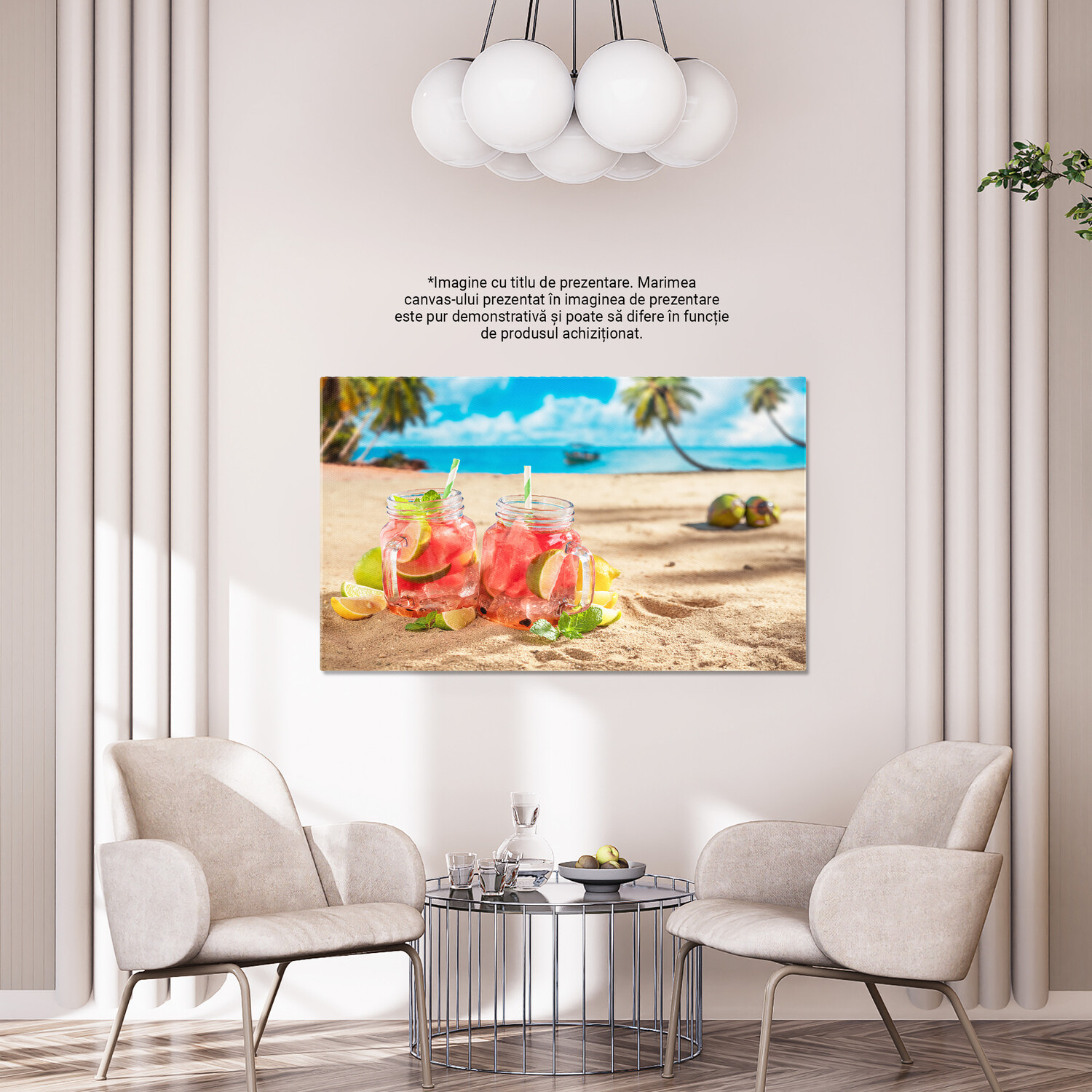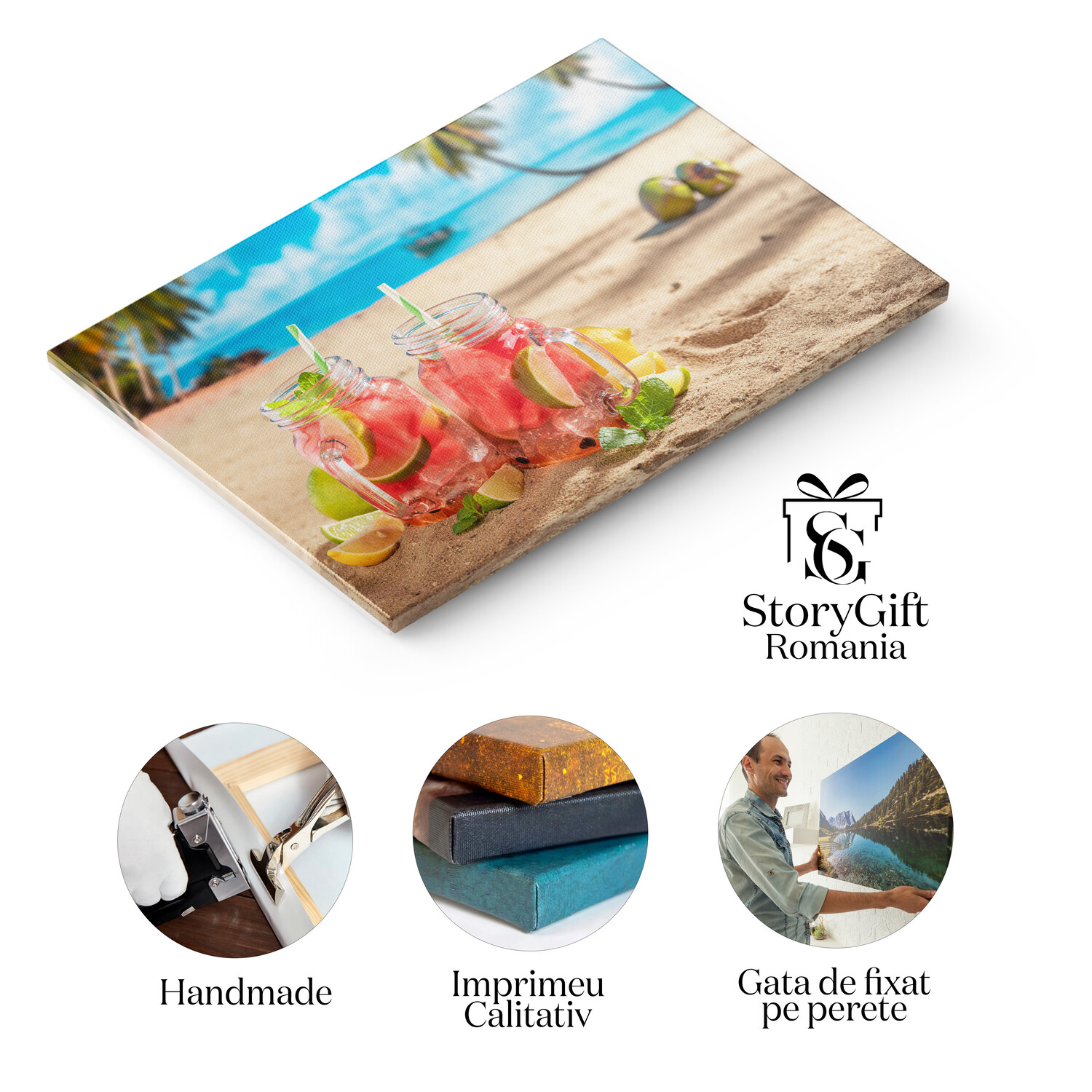 Tablou Canvas Limonada cu Pepene Rosu pe Plaja la Ocean in Vara O Bautura Rafinata, Perfecta pentru Relaxare si Racorire in Vacanta - Tablou Canvas Signature de la StoryGift Romania