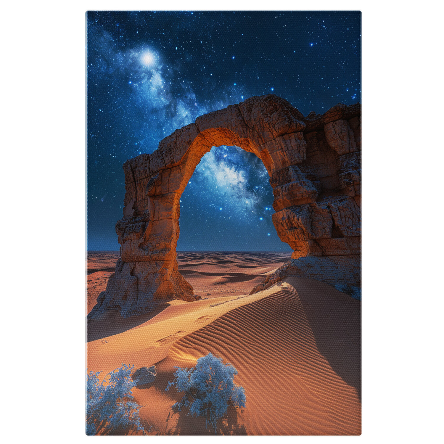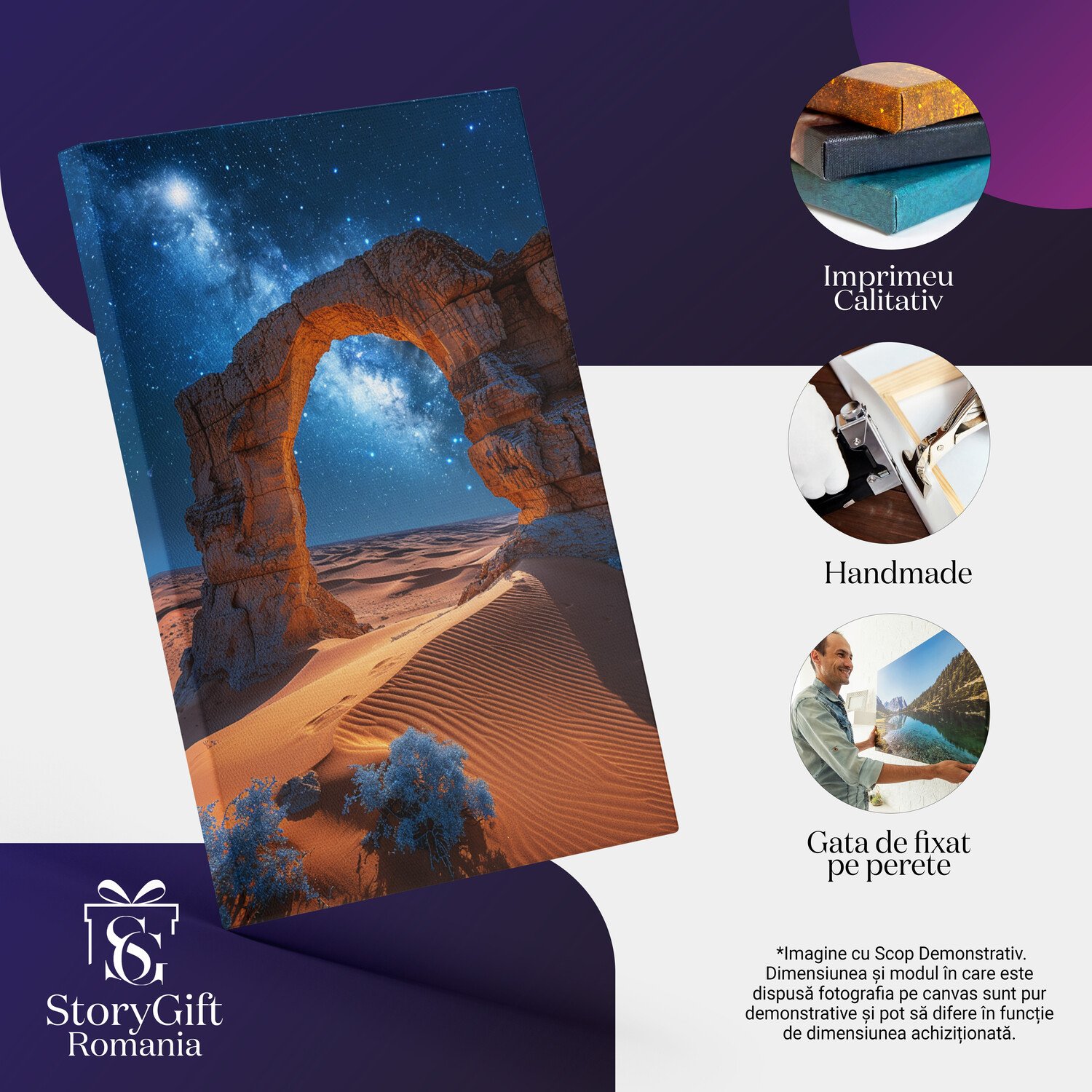Tablou Canvas: Arcada Istorica din Desert prin care se poate Vedea Cerul Intunecat si Instelat Pictura Digitala - Tablou Canvas Signature de la StoryGift Romania