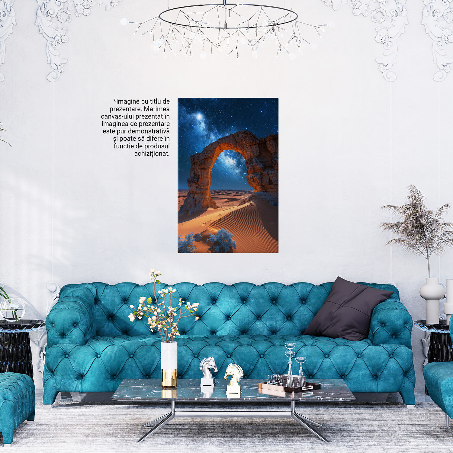 Tablou Canvas: Arcada Istorica din Desert prin care se poate Vedea Cerul Intunecat si Instelat Pictura Digitala 90x60CM