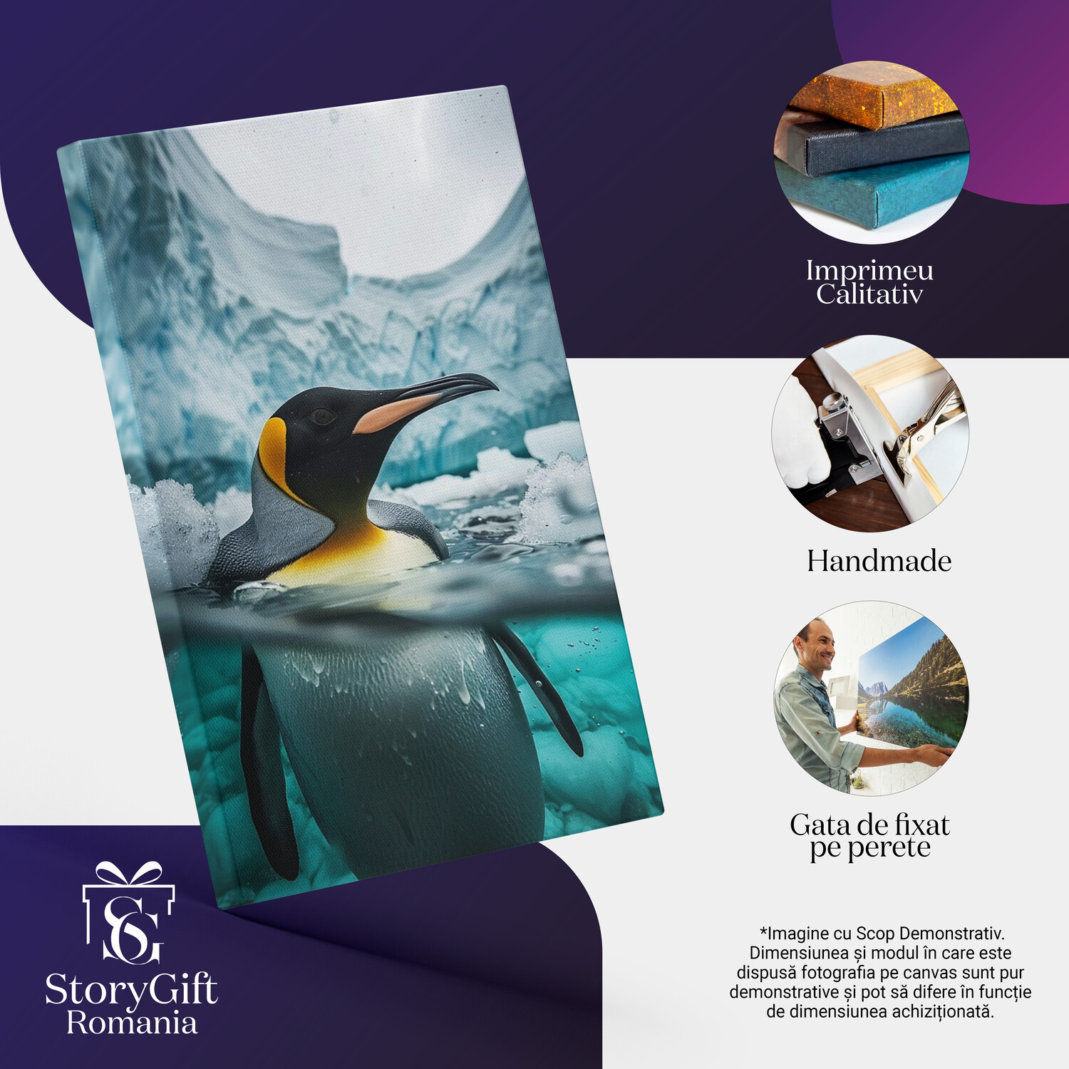 Tablou Canvas: Baia Pinguinului Fericire in Mijlocul Inghetului Apa Cristalina si Transparenta Pictura Digitala - Tablou Canvas Signature de la StoryGift Romania
