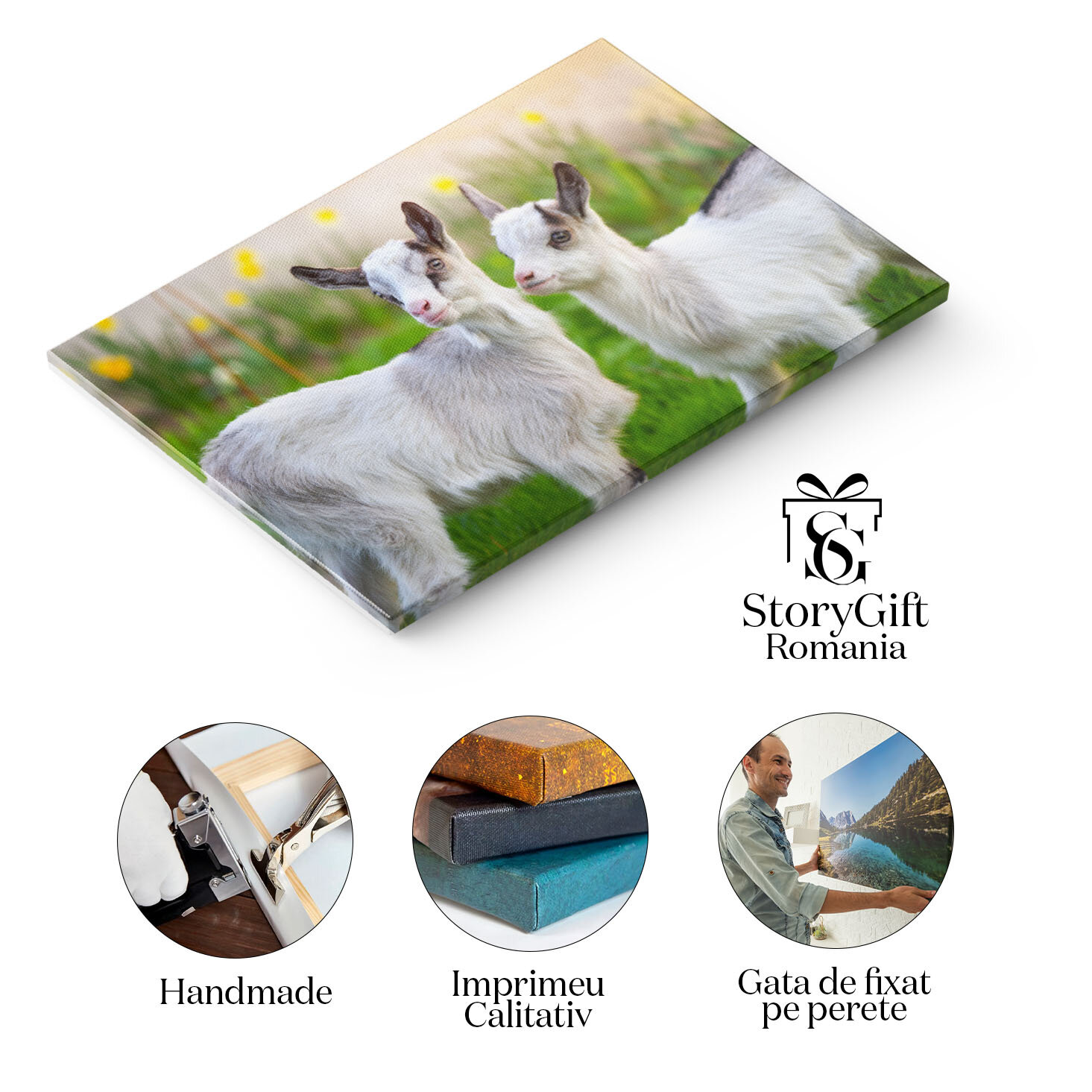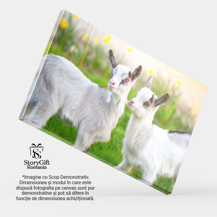 Tablou Canvas cu Pui de Capra in Gradina - Micute Fiinte Curioase 40x25CM