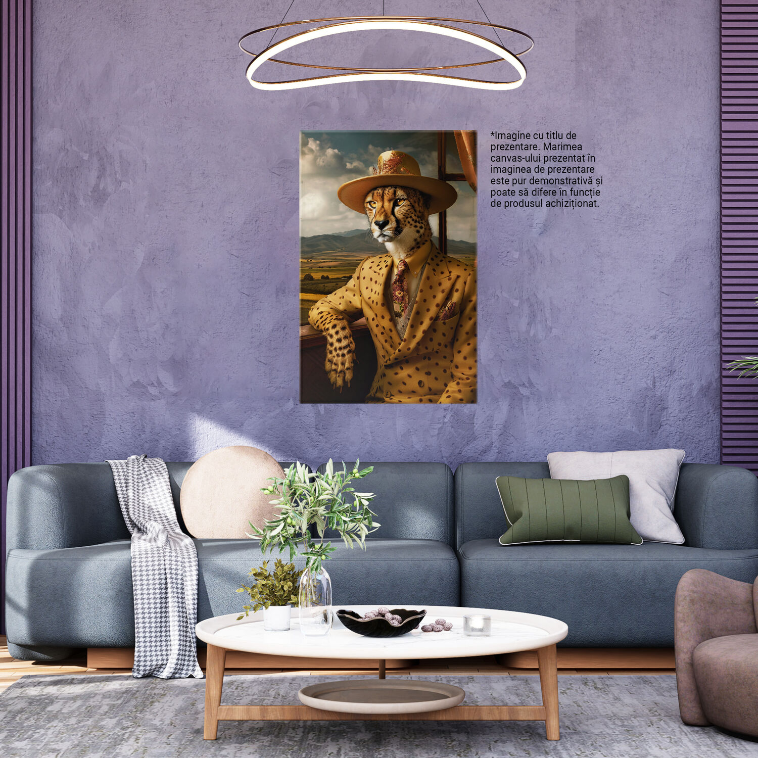 Tablou Canvas Formalitatea si eleganta intruchipate intr-un ghepard- Cravata cu model floral, camp in fundal , Pictura Digitala 90x60CM