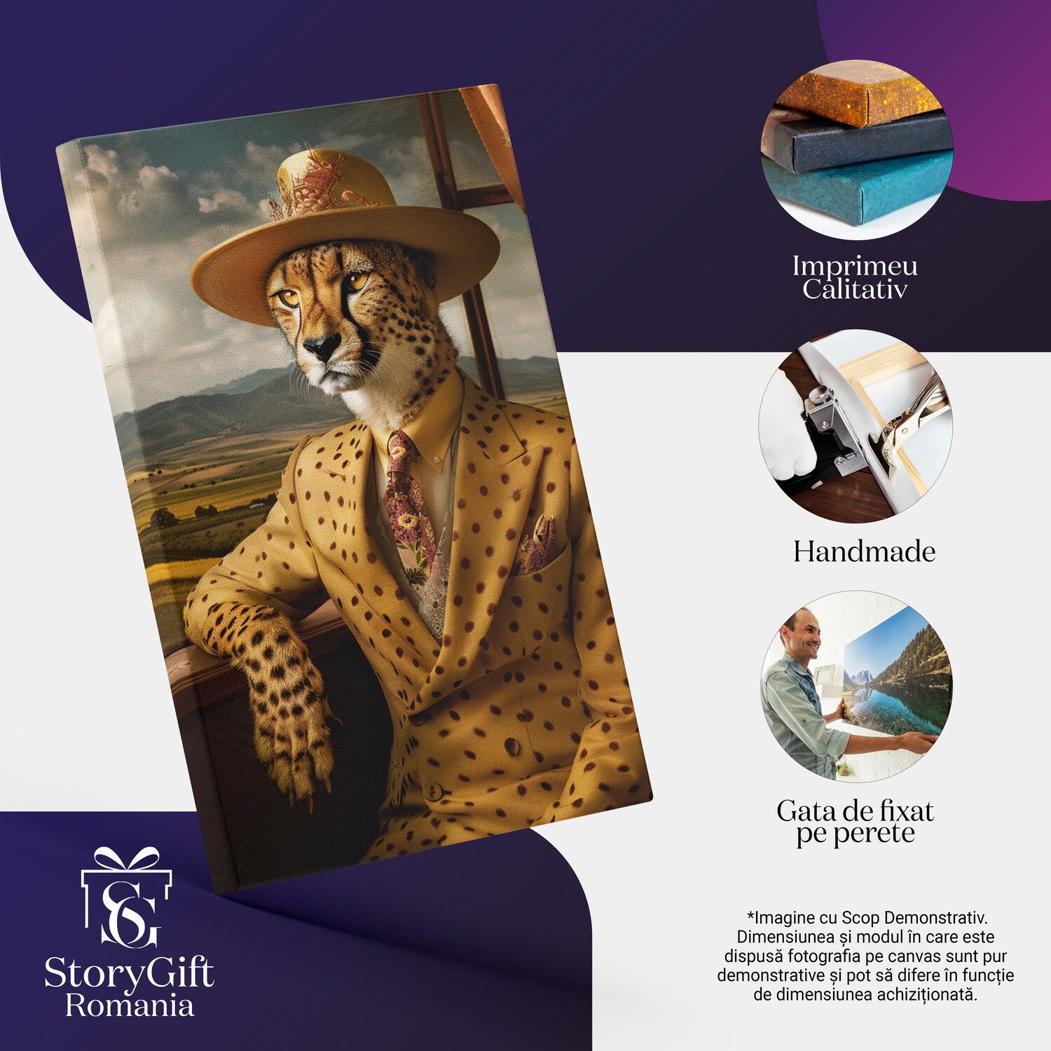 Tablou Canvas Formalitatea si eleganta intruchipate intr-un ghepard- Cravata cu model floral, camp in fundal , Pictura Digitala - Tablou Canvas Signature de la StoryGift Romania