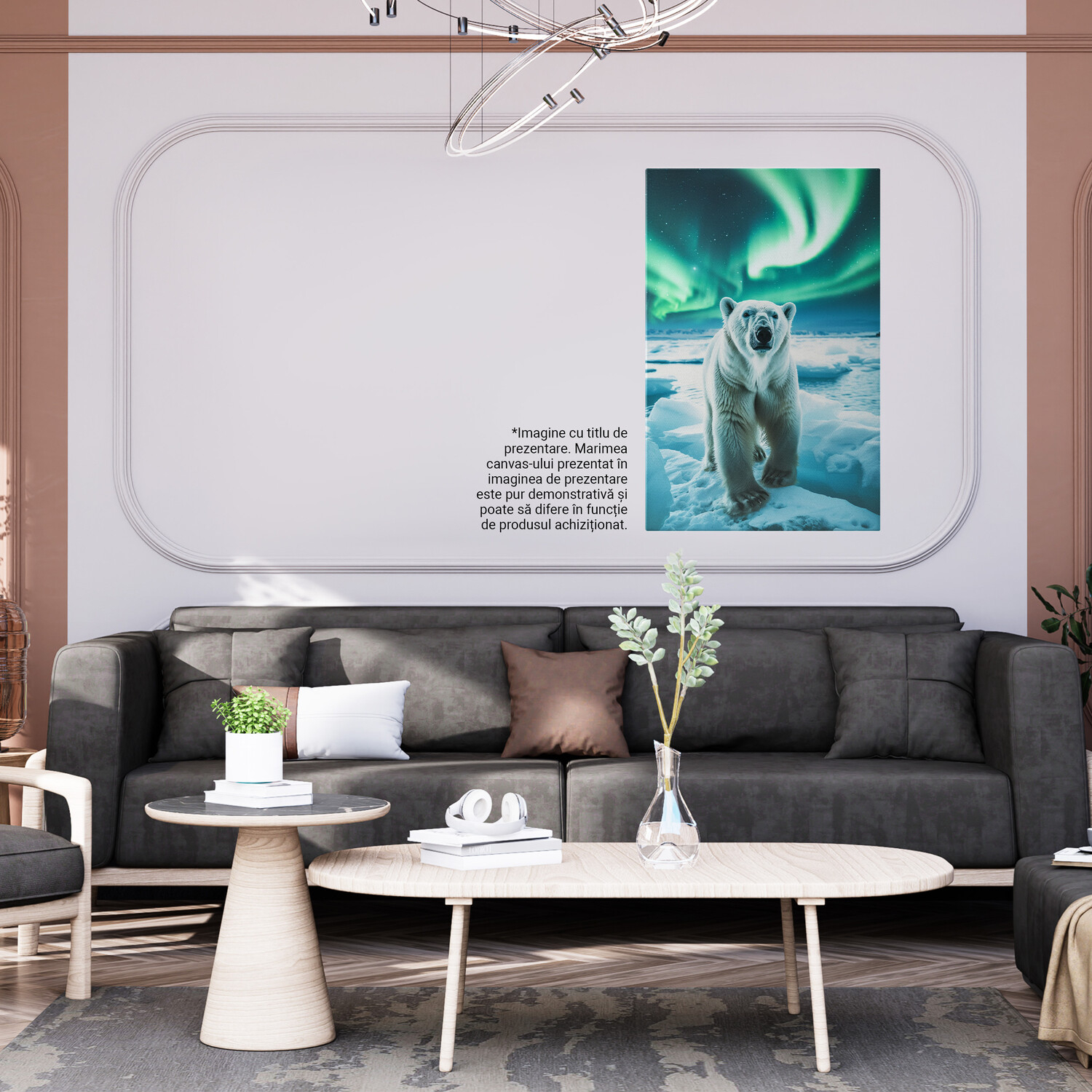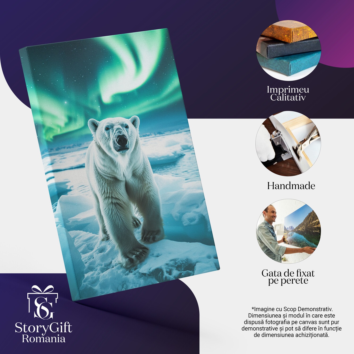 Tablou Canvas: Gheata Aurorei Boreale si Privirea Ursului Polar in Lumina Verde din Zapada Pictura Digitala - Tablou Canvas Signature de la StoryGift Romania