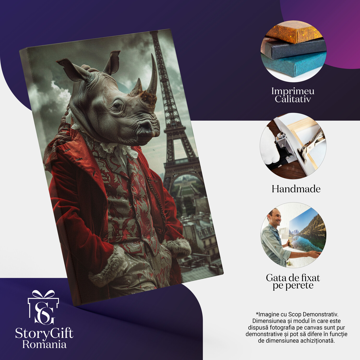 Notă importantă: Precizăm că imaginile de pe site au scop ilustrativ. Detaliile reale ale produsului pot prezenta diferențe minore față de reprezentările digitale, datorită variațiilor de culoare, mărimea tabloului și rezoluția dispozitivelor. Disponibilitatea în diverse dimensiuni ne permite să satisfacem nevoile dvs. specifice; pentru a vă asigura de alegerea potrivită, recomandăm măsurarea atentă a spațiului alocat.