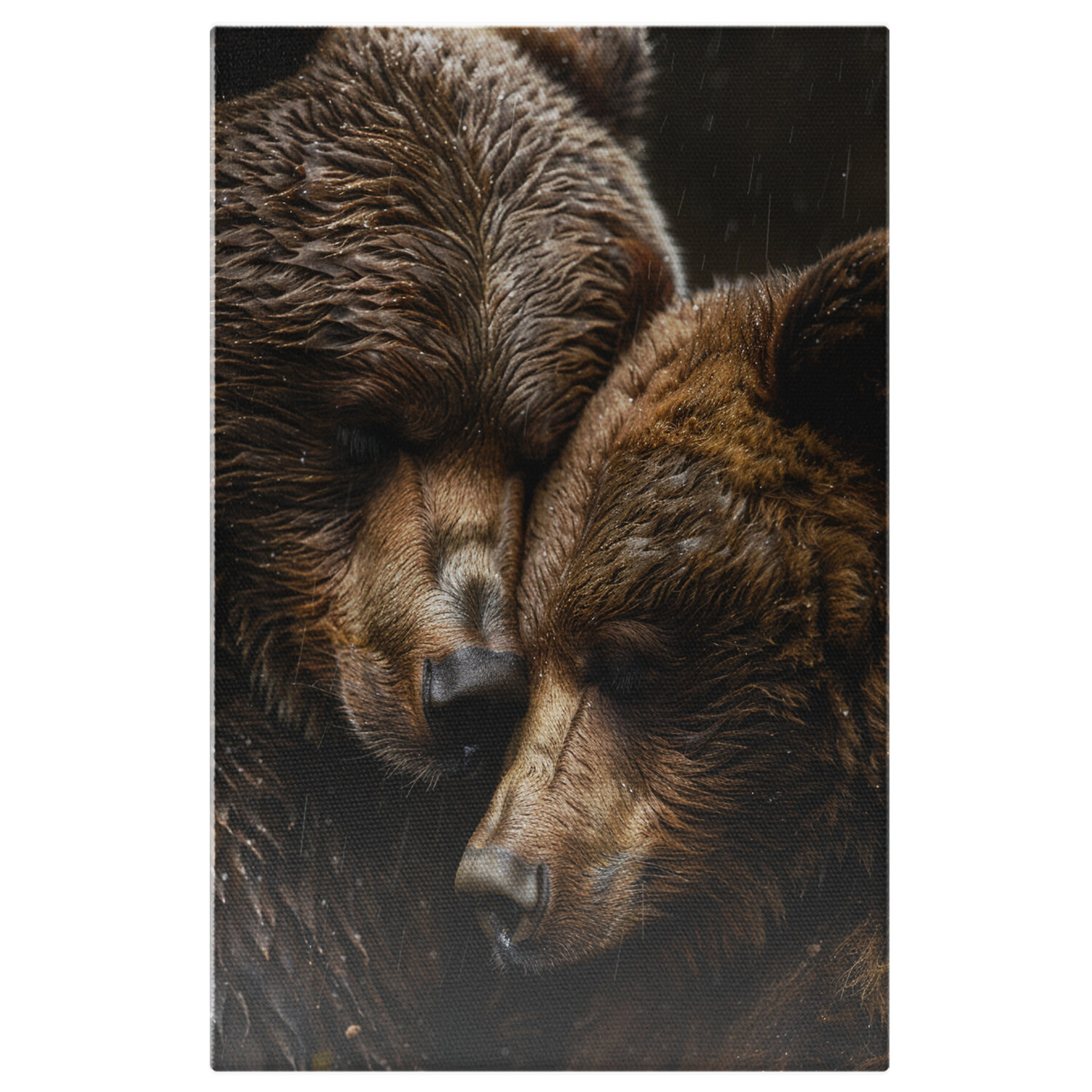 Tablou Canvas: Imaginea unor Doi Ursi Imbratisati pe Ploaie - Fotografie Artistica si Dragostea Animalelor Pictura Digitala 60x40CM