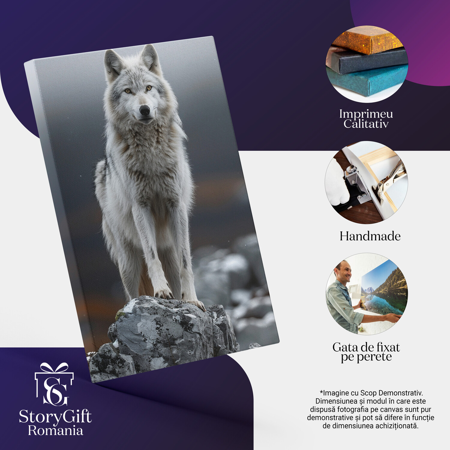 Tablou Canvas In Umbra Cetei Lupul in Repaus pe Stancile de Langa Padurea Stufoasa , Pictura Digitala - Tablou Canvas Signature de la StoryGift Romania