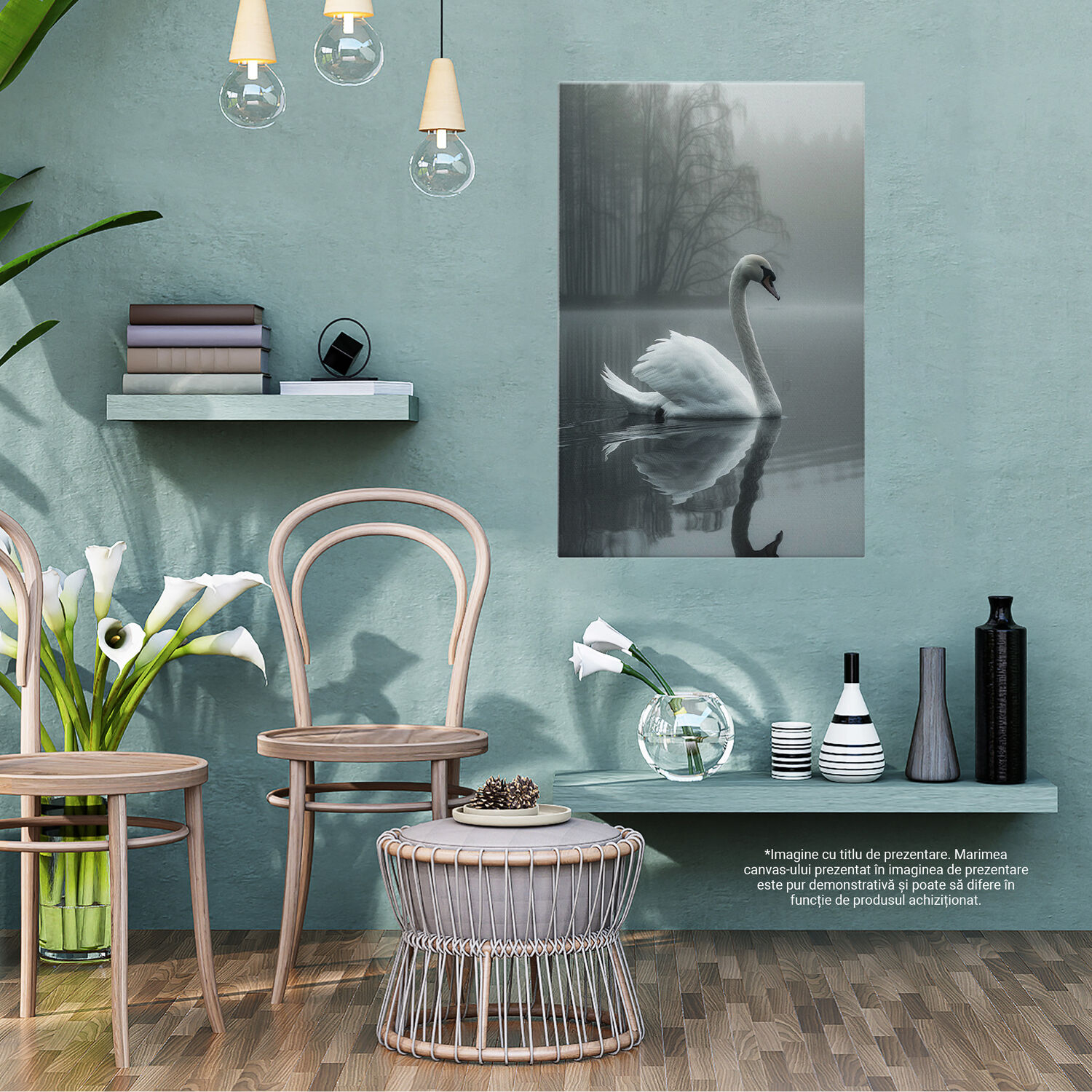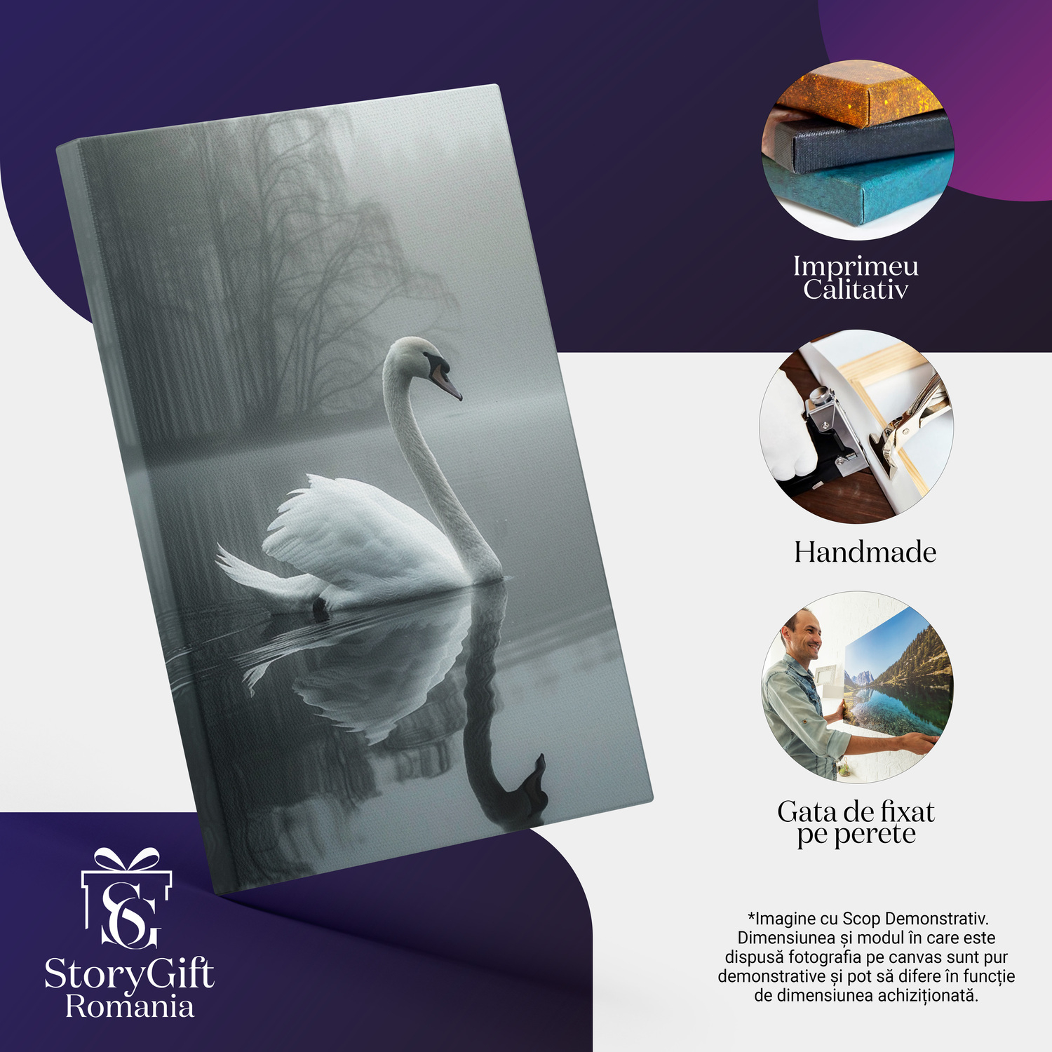 Tablou Canvas: Lebada singuratica pe apa limpede a lacului - Melancolie pe lac Pictura Digitala - Tablou Canvas Signature de la StoryGift Romania