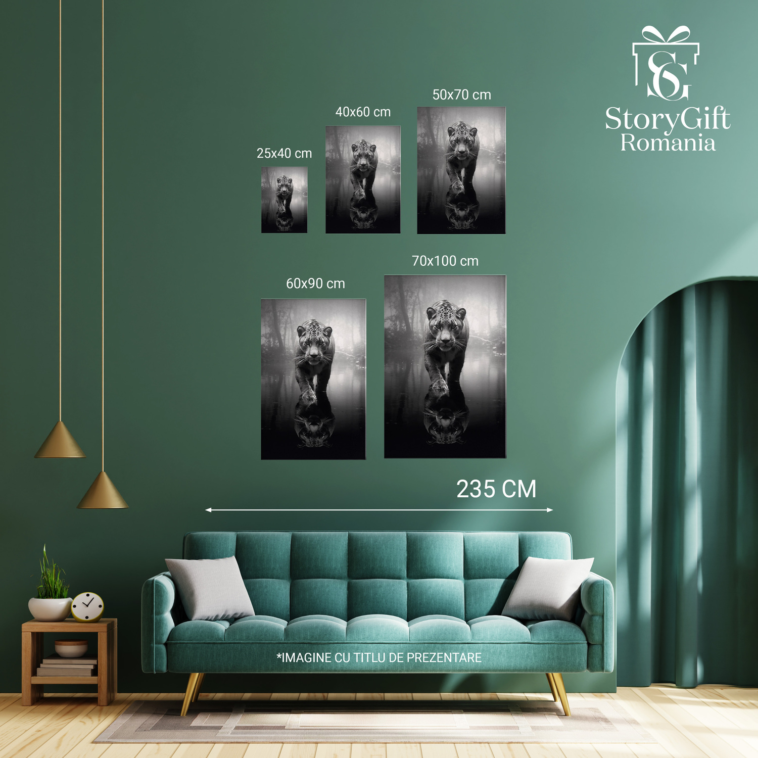 Notă importantă: Precizăm că imaginile de pe site au scop ilustrativ. Detaliile reale ale produsului pot prezenta diferențe minore față de reprezentările digitale, datorită variațiilor de culoare, mărimea tabloului și rezoluția dispozitivelor. Disponibilitatea în diverse dimensiuni ne permite să satisfacem nevoile dvs. specifice; pentru a vă asigura de alegerea potrivită, recomandăm măsurarea atentă a spațiului alocat.