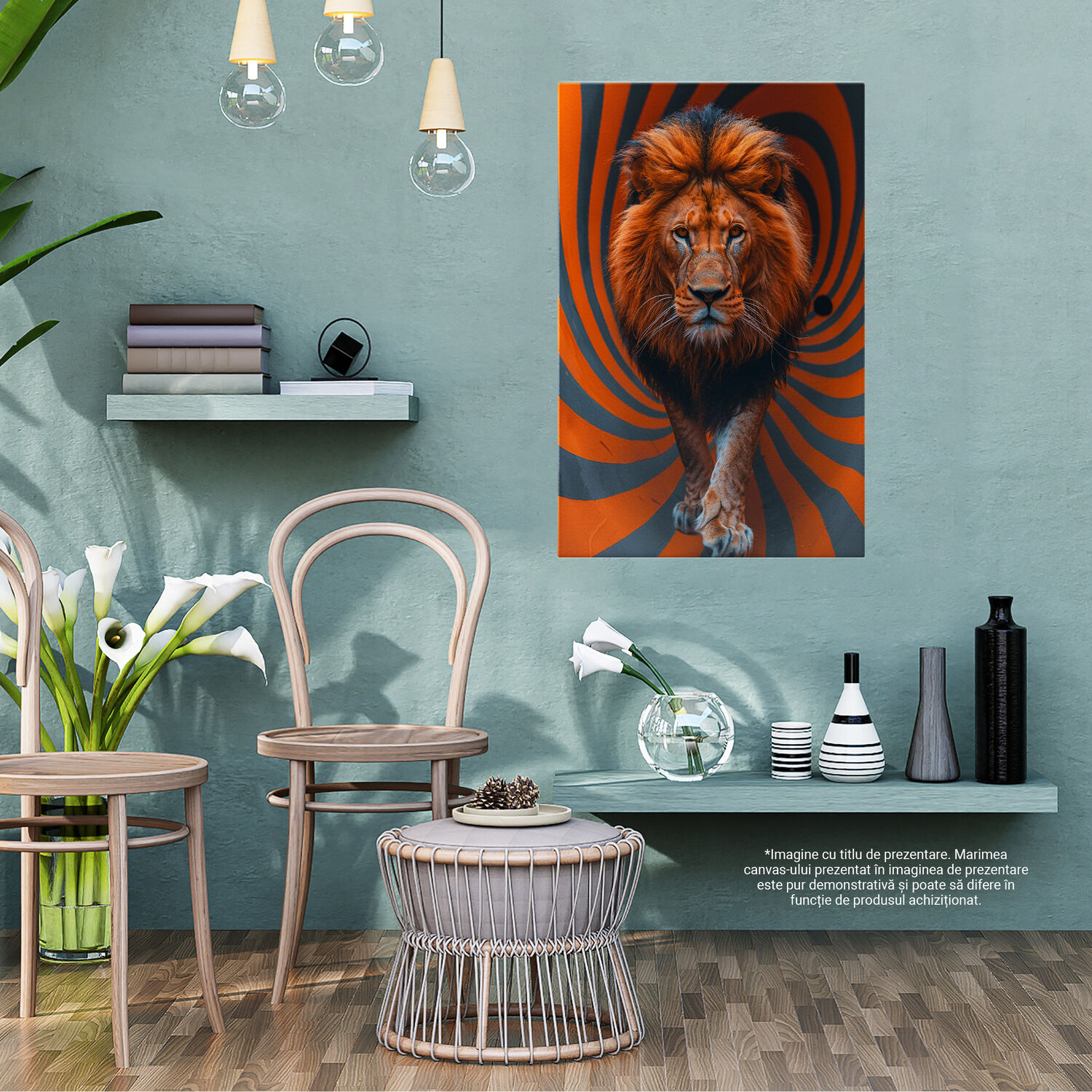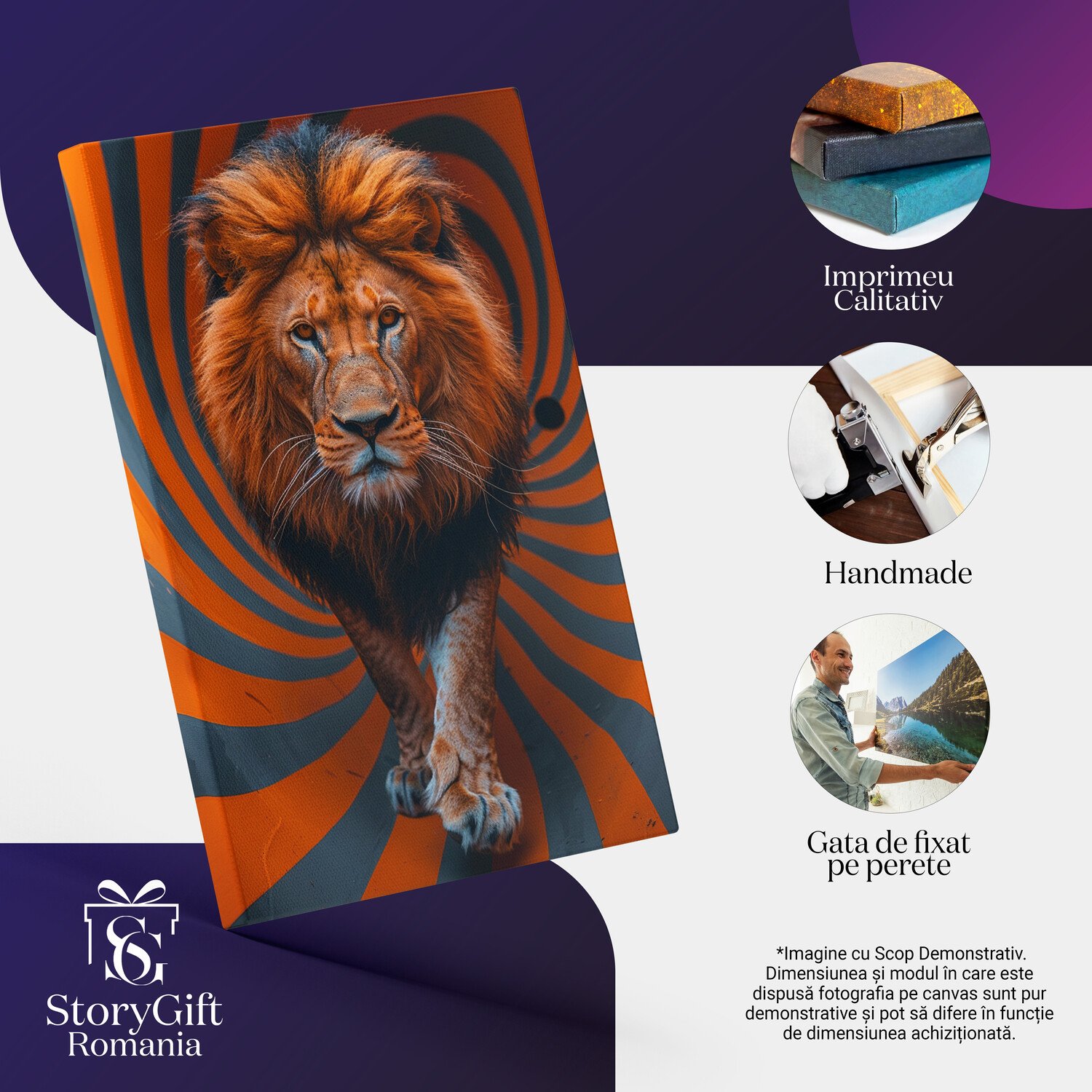 Tablou Canvas: Leul care infrunta labirintul optic - Grandoarea Regala a leului Pictura Digitala - Tablou Canvas Signature de la StoryGift Romania