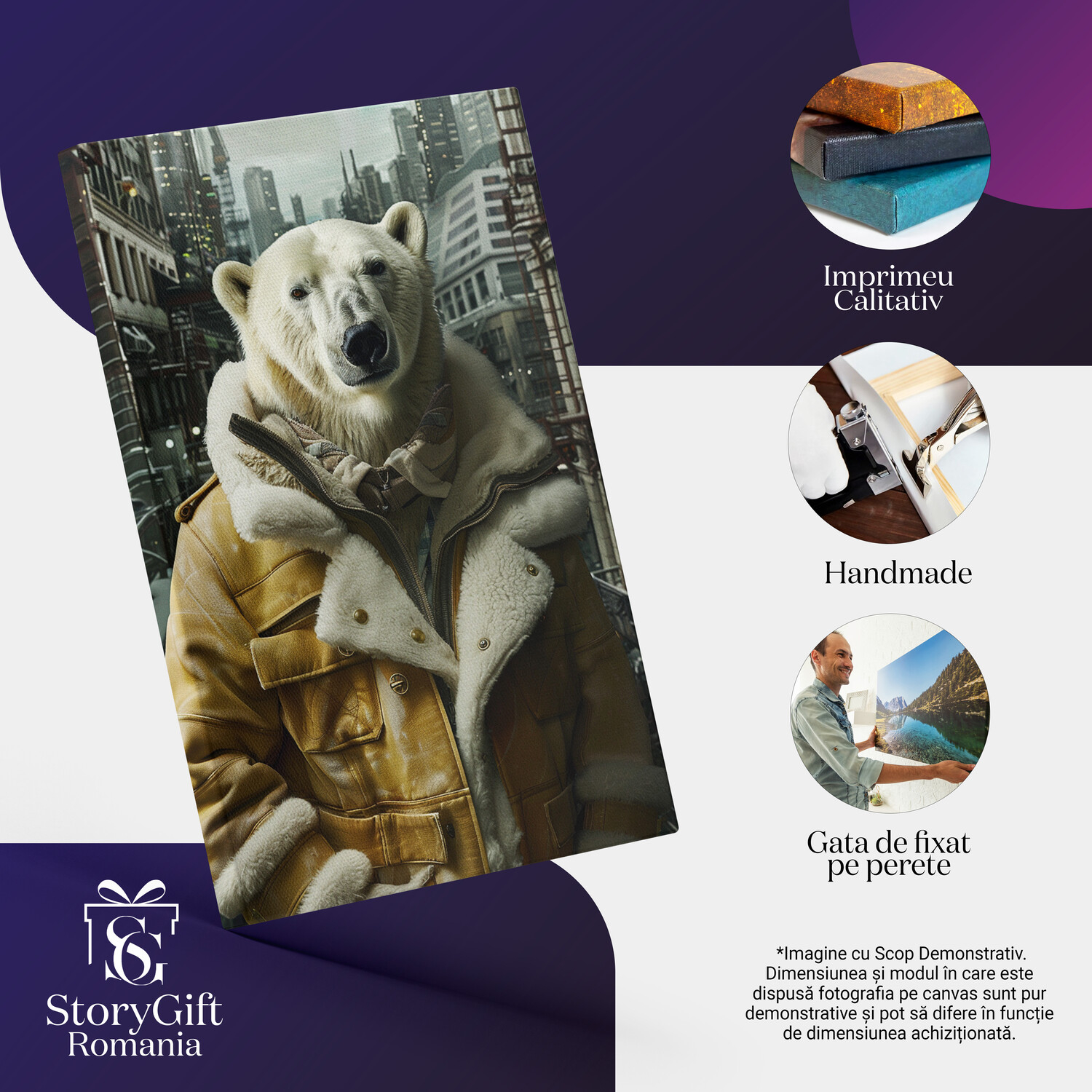 Notă importantă: Precizăm că imaginile de pe site au scop ilustrativ. Detaliile reale ale produsului pot prezenta diferențe minore față de reprezentările digitale, datorită variațiilor de culoare, mărimea tabloului și rezoluția dispozitivelor. Disponibilitatea în diverse dimensiuni ne permite să satisfacem nevoile dvs. specifice; pentru a vă asigura de alegerea potrivită, recomandăm măsurarea atentă a spațiului alocat.