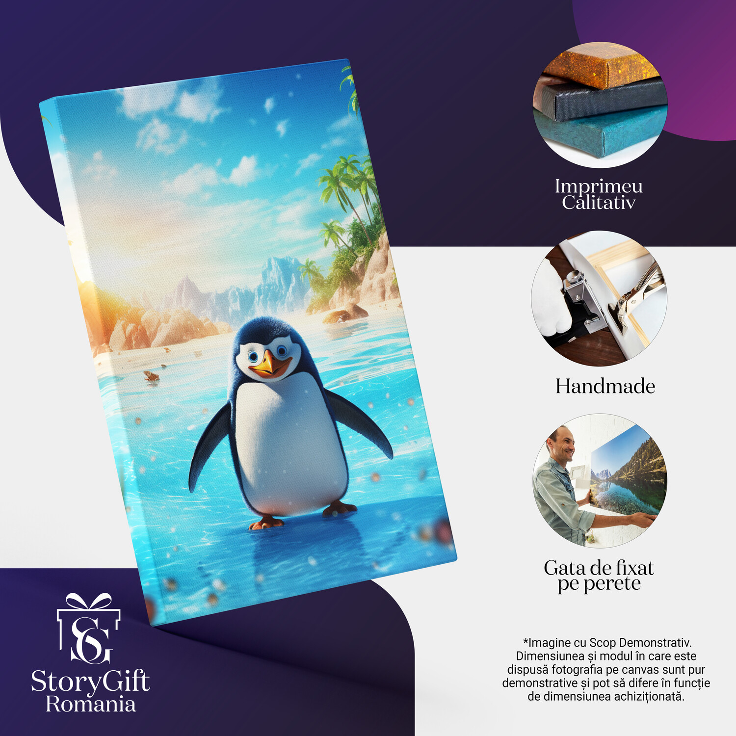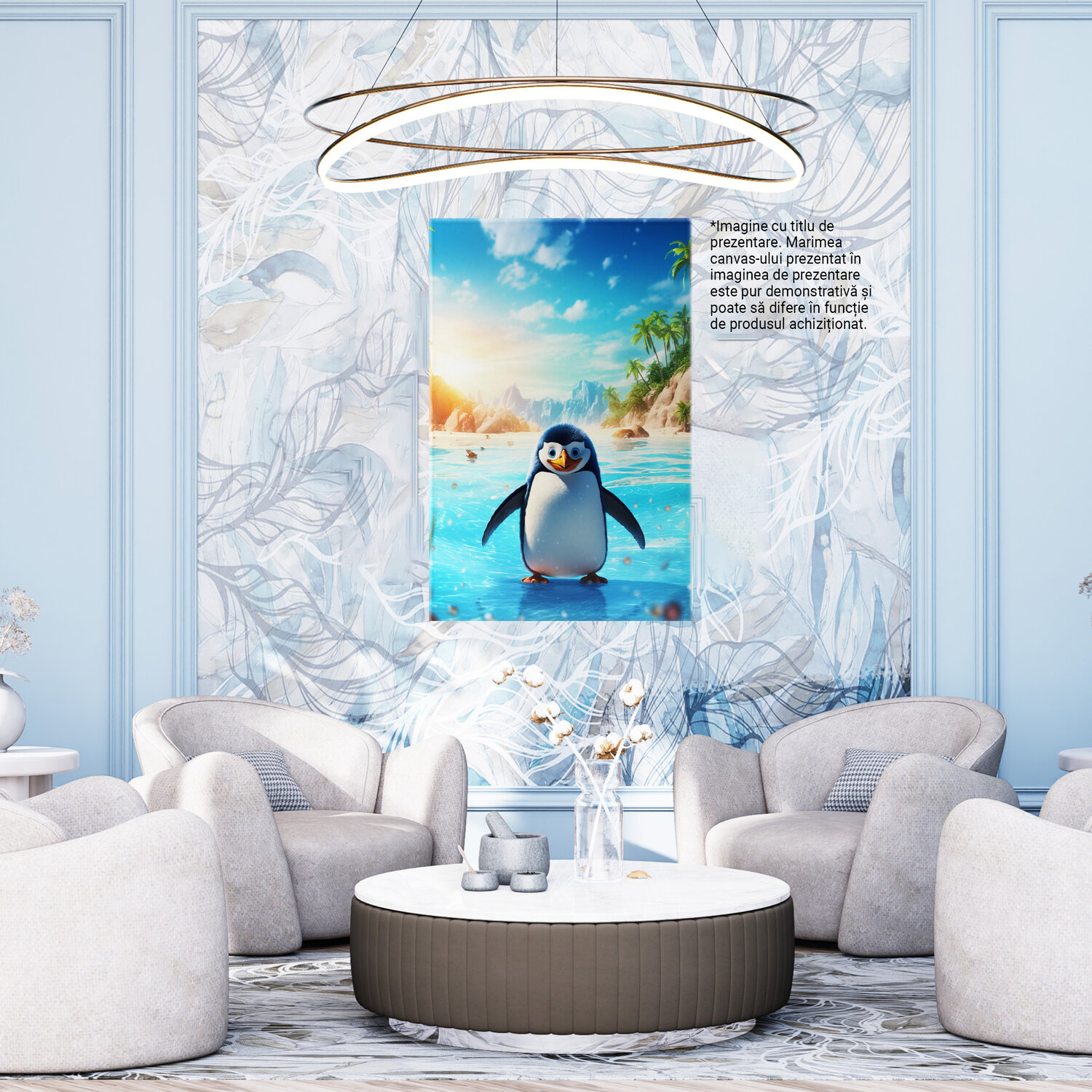 Tablou Canvas: Pinguin pe Gheata caer se Topeste de la Soare Micutul Pinguin cu Ochii Albastrii Pictura Digitala - Tablou Canvas Signature de la StoryGift Romania