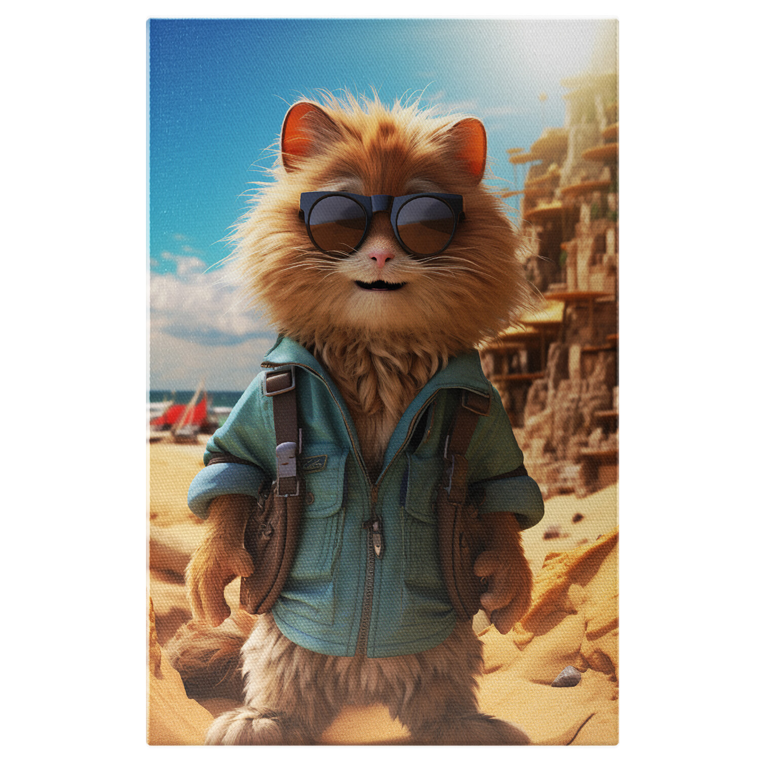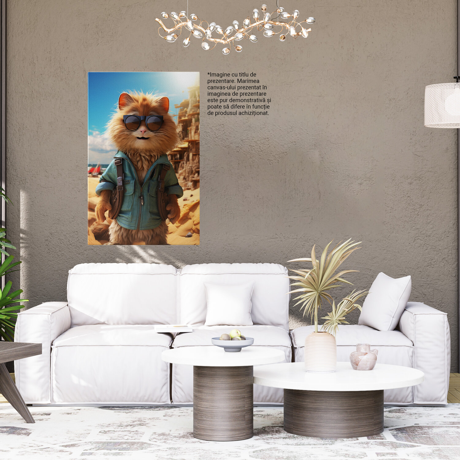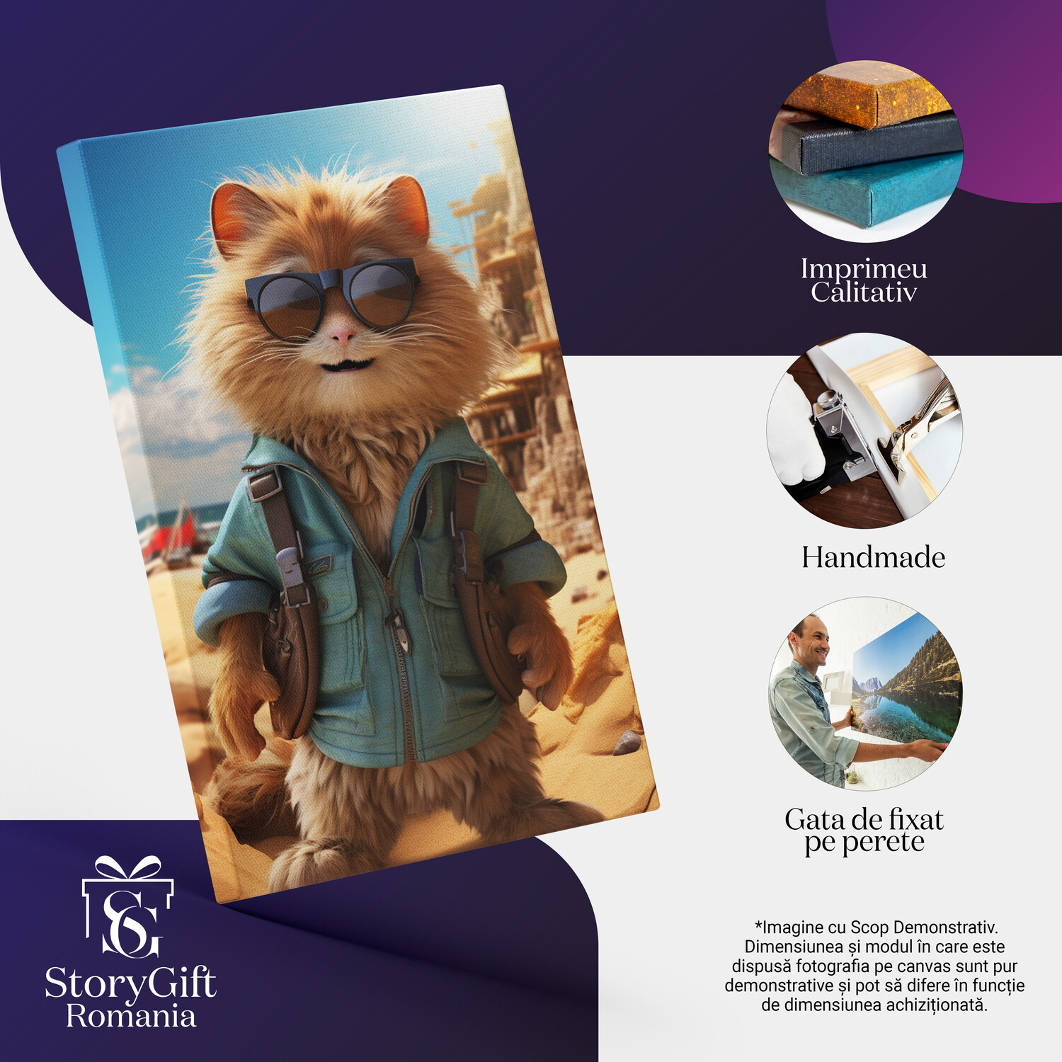 Tablou Canvas: Pisicuta cu Blana Mare si Ochelari de Soare Negri in Jacheta Albastra cu Gentute pe Umar Pictura Digitala - Tablou Canvas Signature de la StoryGift Romania