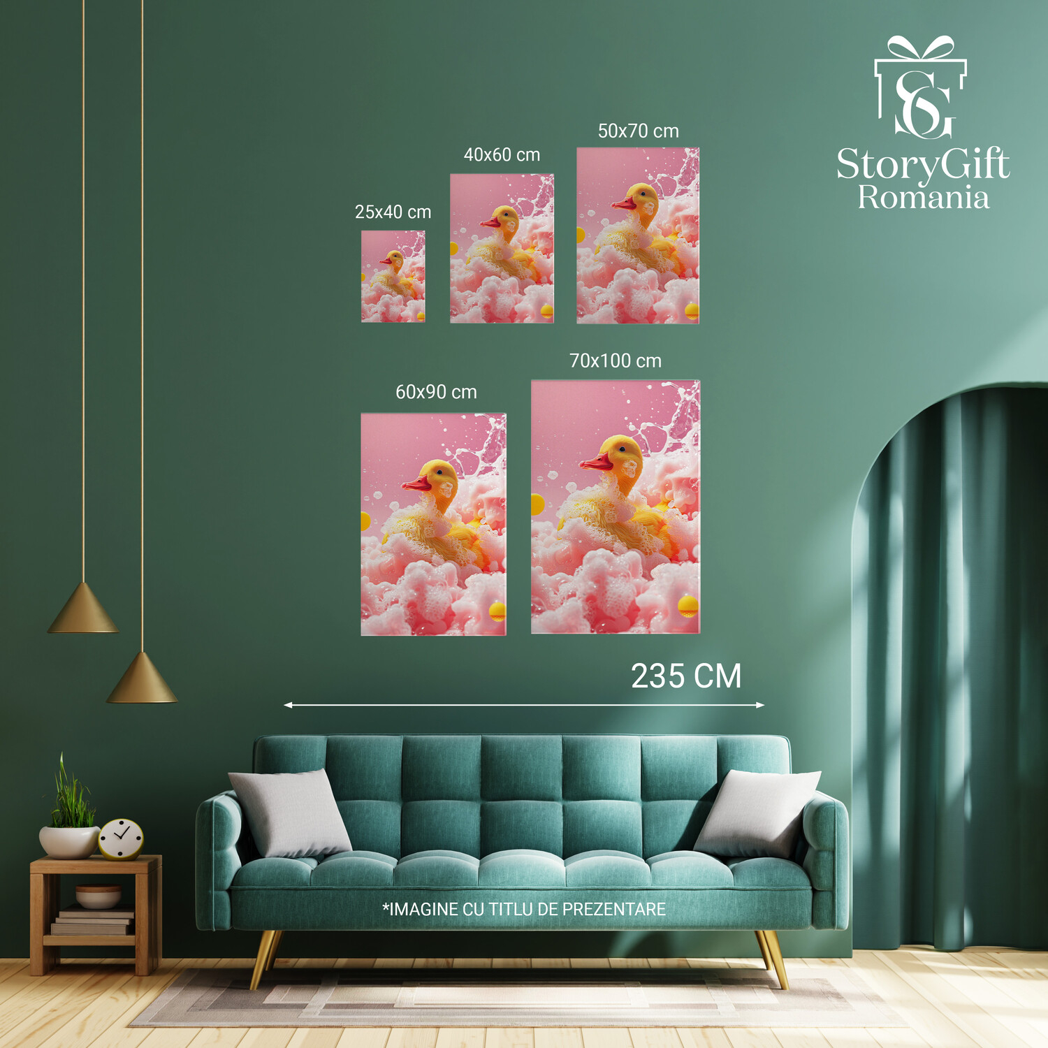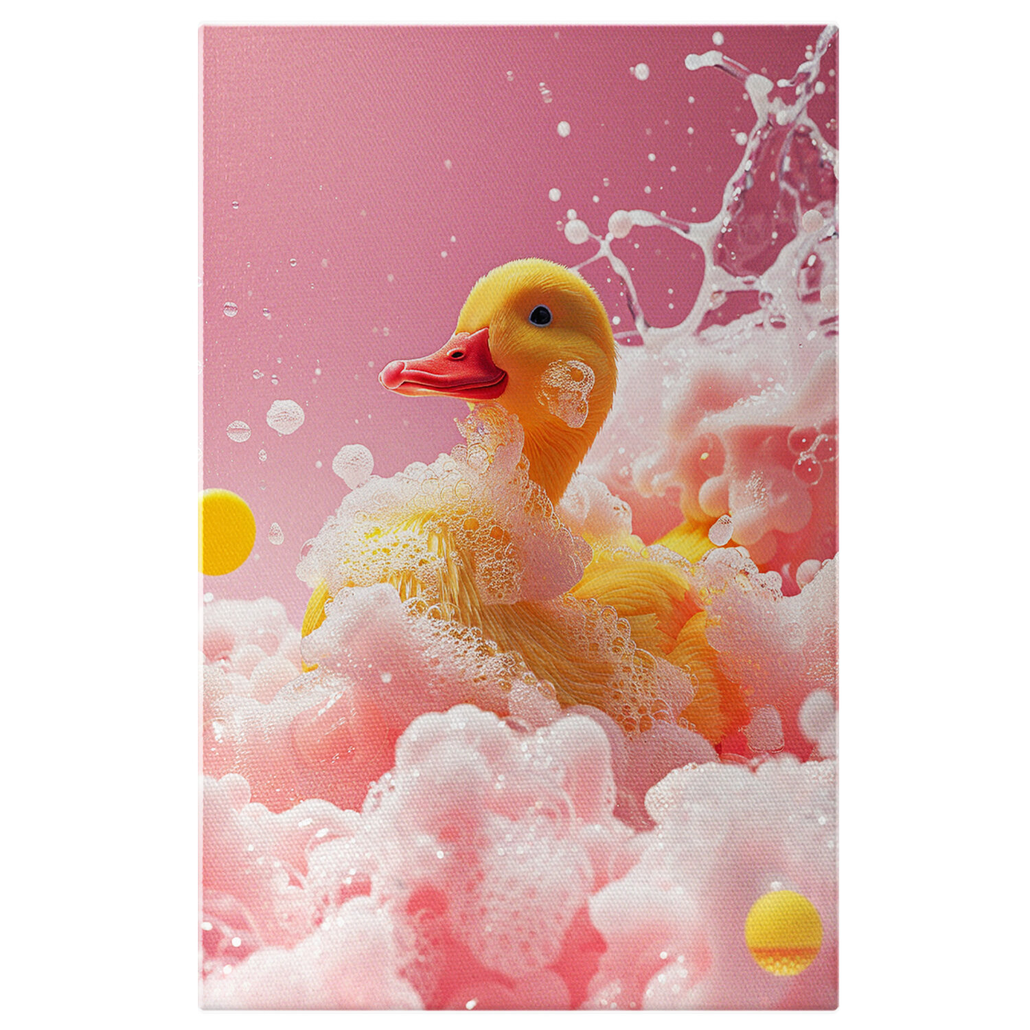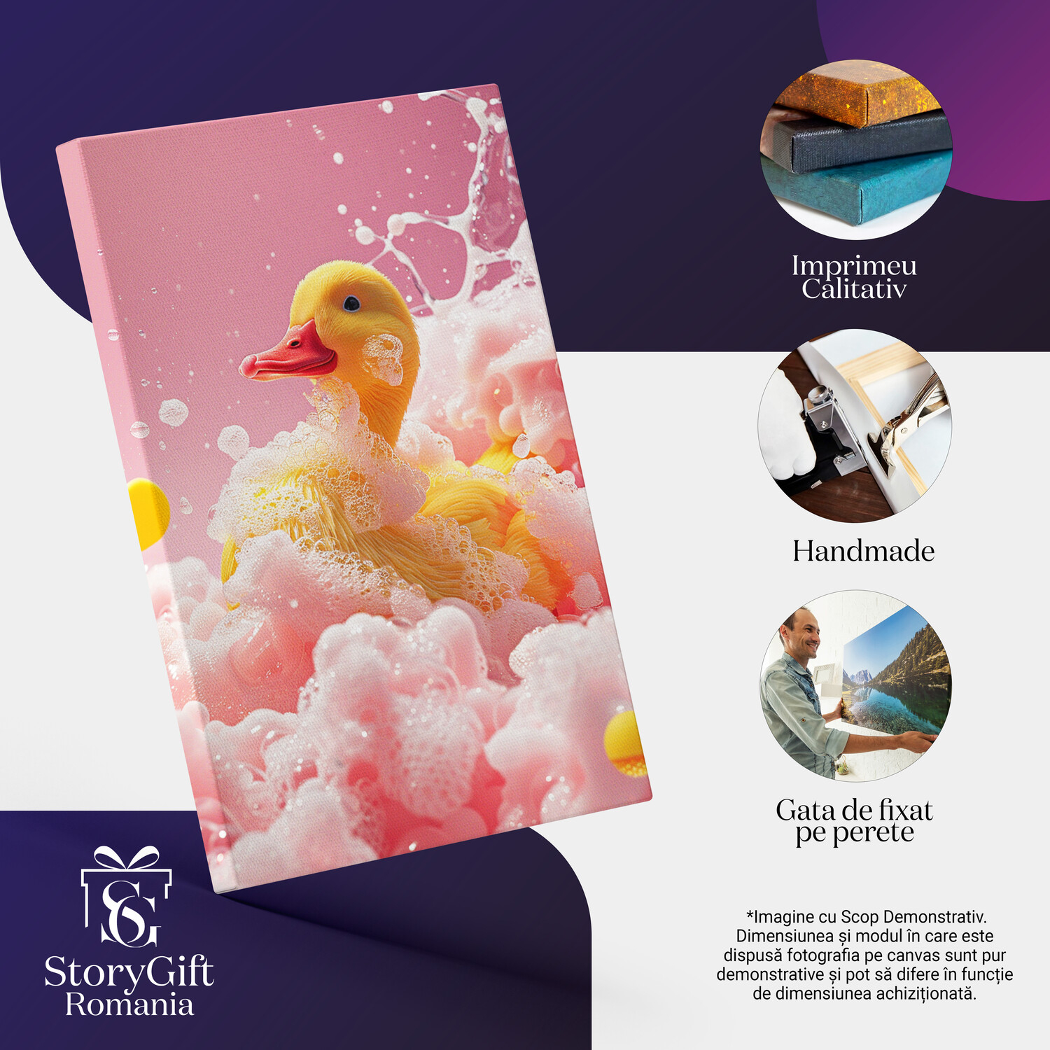 Tablou Canvas Ratusca Imbaiata in Spuma de Sapun Roz Joaca si Miros Frumos cu Bulbuci , Pictura Digitala - Tablou Canvas Signature de la StoryGift Romania