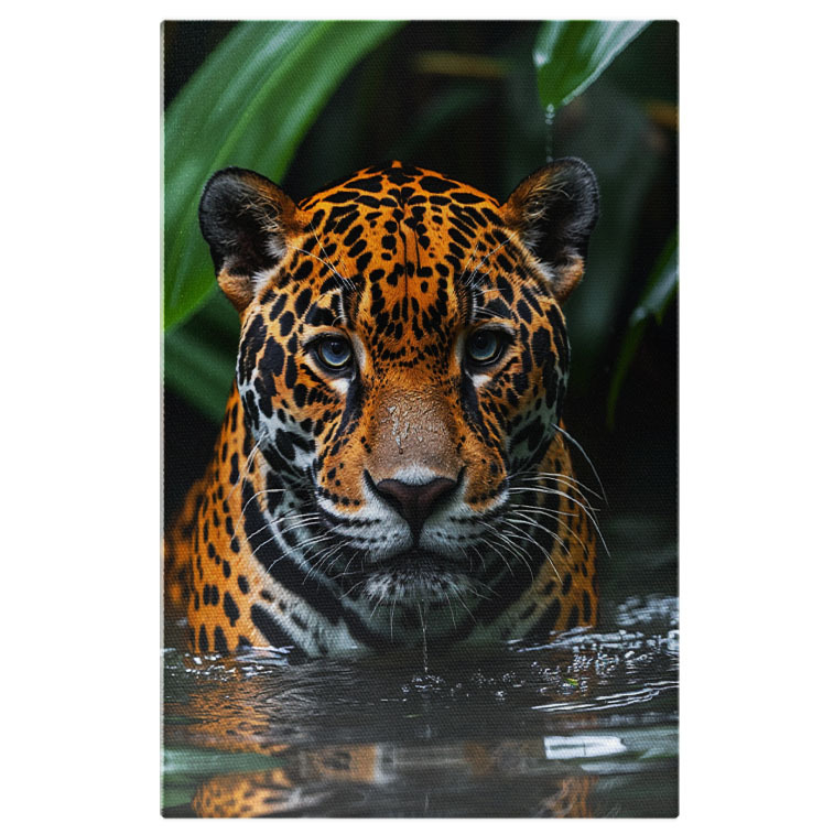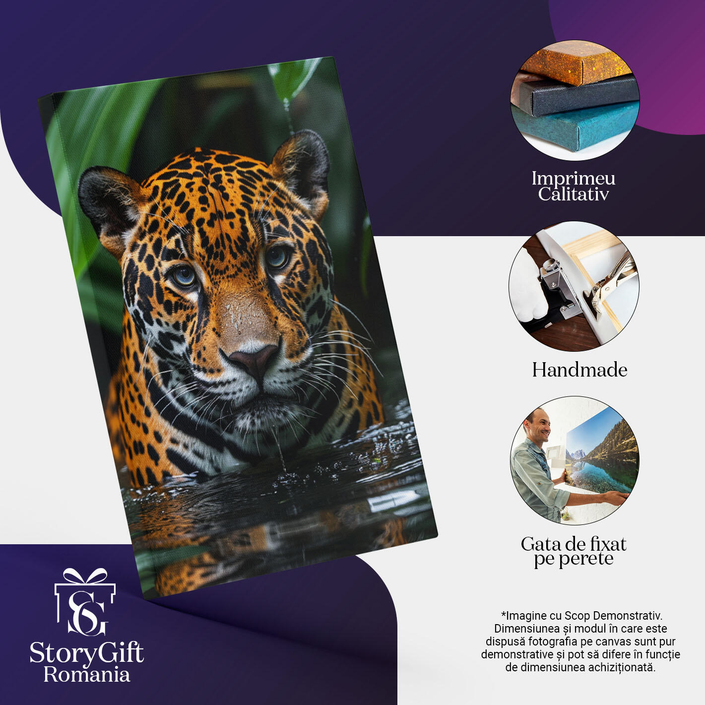 Tablou Canvas Contrast Vibrant Portocaliul cu Pete al Tigrului Strălucint Printre Frunzele Verzi , Pictura Digitala 40x25CM