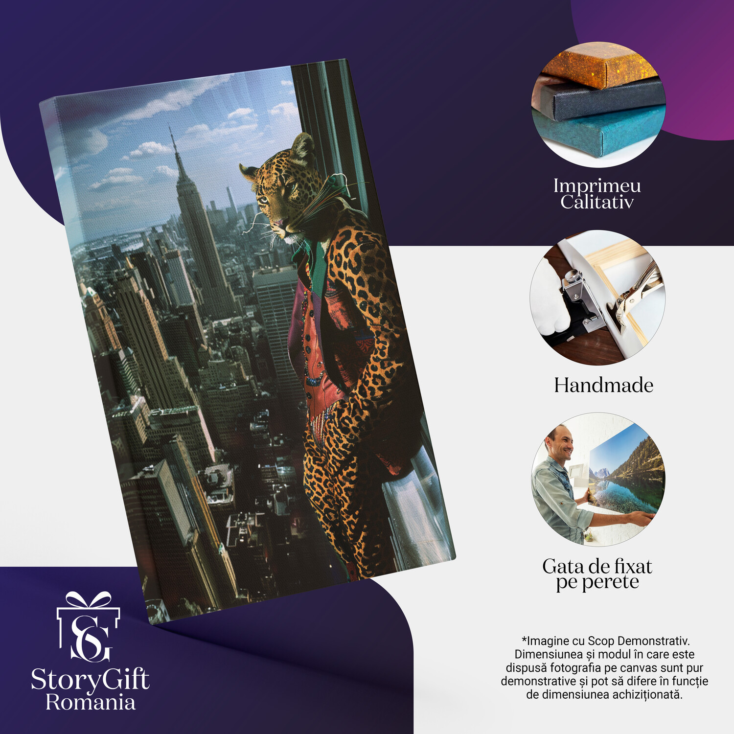 Notă importantă: Precizăm că imaginile de pe site au scop ilustrativ. Detaliile reale ale produsului pot prezenta diferențe minore față de reprezentările digitale, datorită variațiilor de culoare, mărimea tabloului și rezoluția dispozitivelor. Disponibilitatea în diverse dimensiuni ne permite să satisfacem nevoile dvs. specifice; pentru a vă asigura de alegerea potrivită, recomandăm măsurarea atentă a spațiului alocat.
