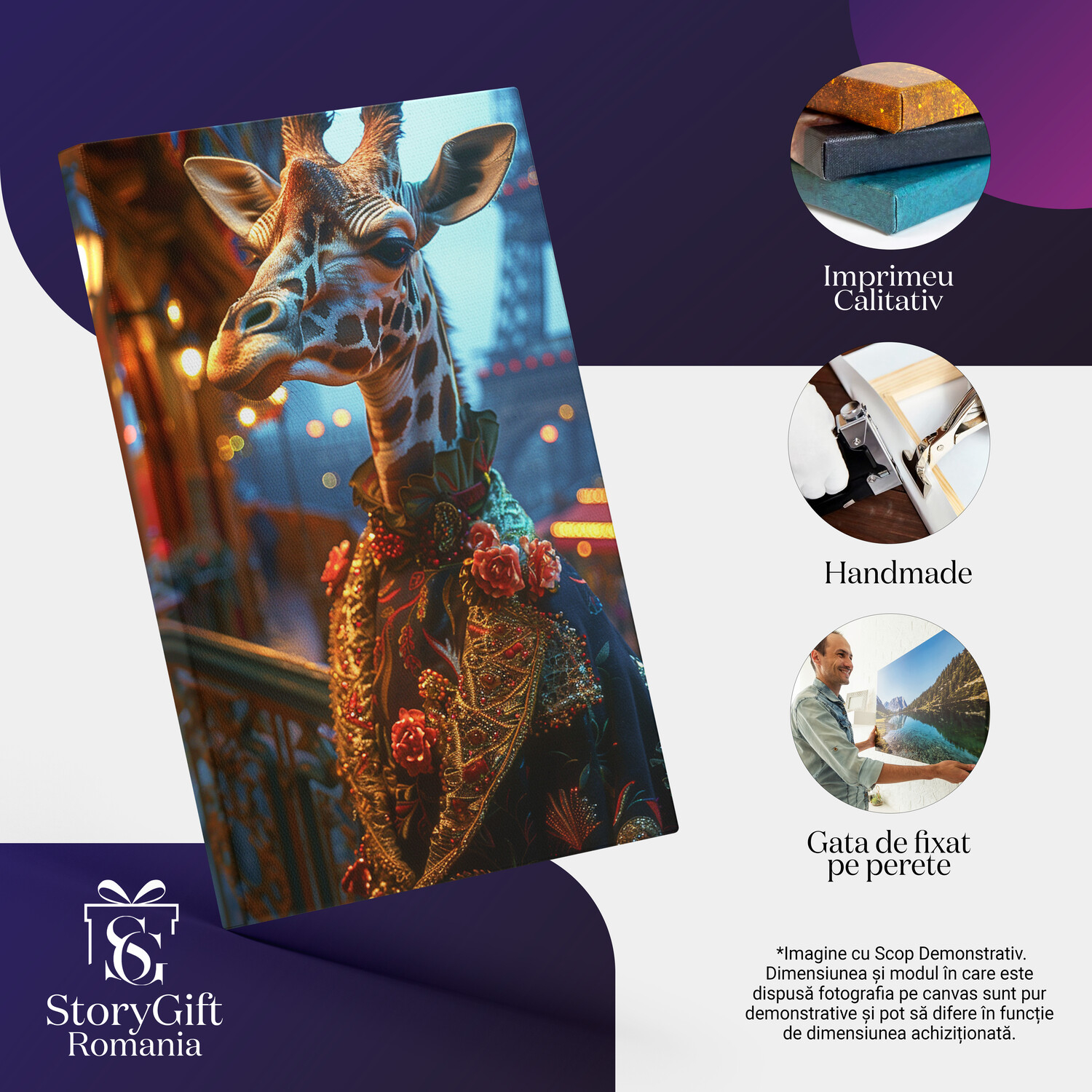 Notă importantă: Precizăm că imaginile de pe site au scop ilustrativ. Detaliile reale ale produsului pot prezenta diferențe minore față de reprezentările digitale, datorită variațiilor de culoare, mărimea tabloului și rezoluția dispozitivelor. Disponibilitatea în diverse dimensiuni ne permite să satisfacem nevoile dvs. specifice; pentru a vă asigura de alegerea potrivită, recomandăm măsurarea atentă a spațiului alocat.