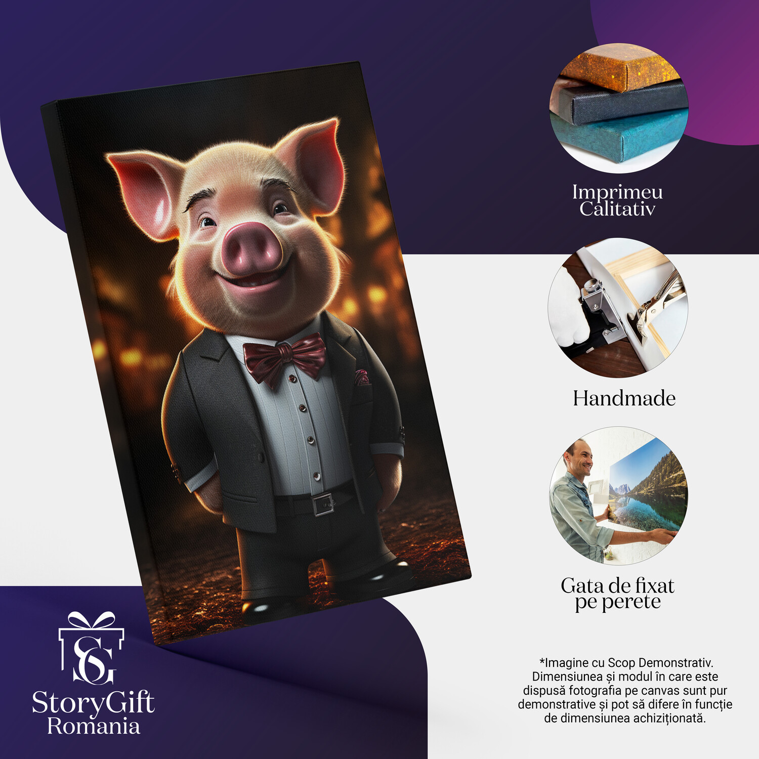 Tablou Canvas: Taifasul Purcelusului Animat si Seara sa Eleganta in Oras Pictura Digitala - Tablou Canvas Signature de la StoryGift Romania