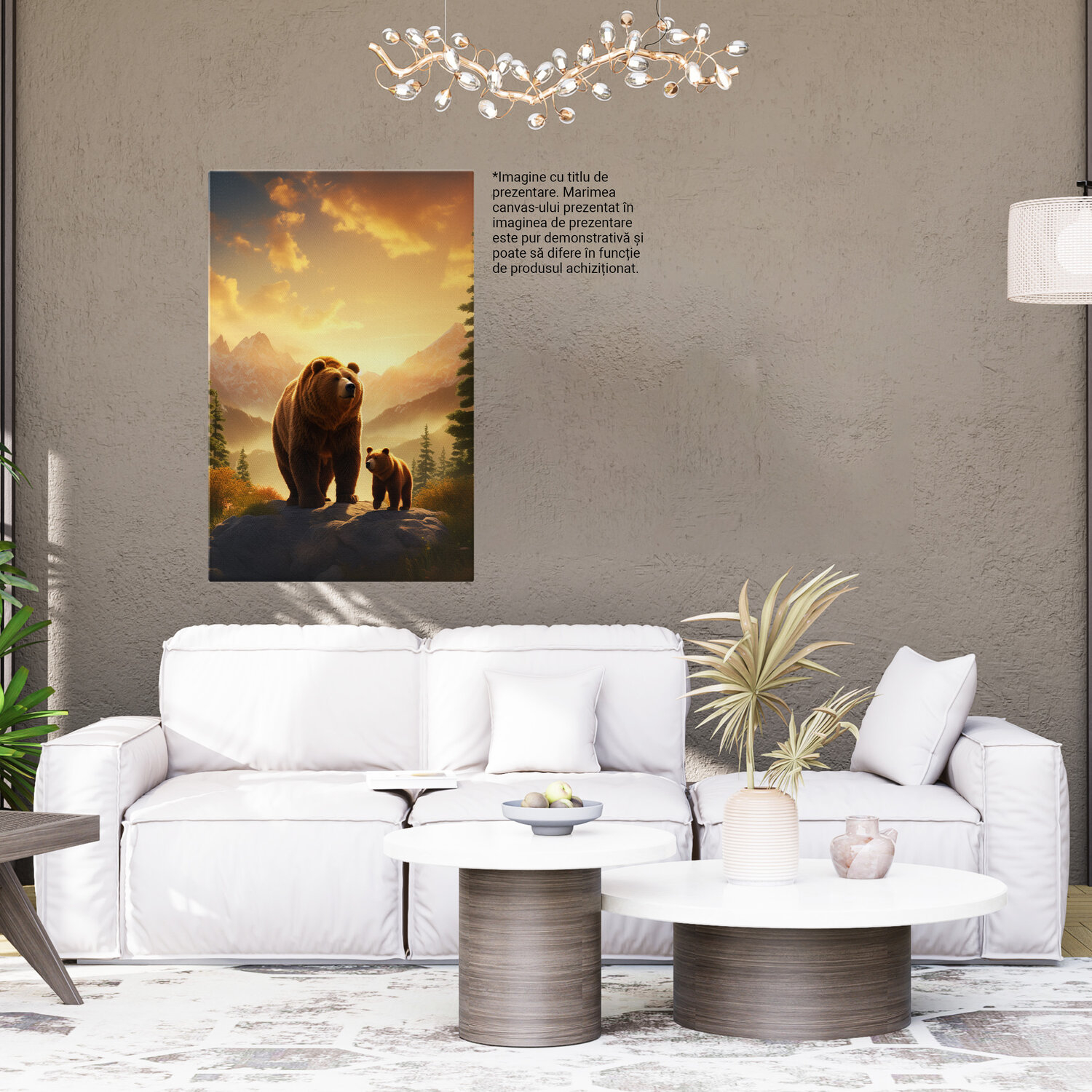 Notă importantă: Precizăm că imaginile de pe site au scop ilustrativ. Detaliile reale ale produsului pot prezenta diferențe minore față de reprezentările digitale, datorită variațiilor de culoare, mărimea tabloului și rezoluția dispozitivelor. Disponibilitatea în diverse dimensiuni ne permite să satisfacem nevoile dvs. specifice; pentru a vă asigura de alegerea potrivită, recomandăm măsurarea atentă a spațiului alocat.