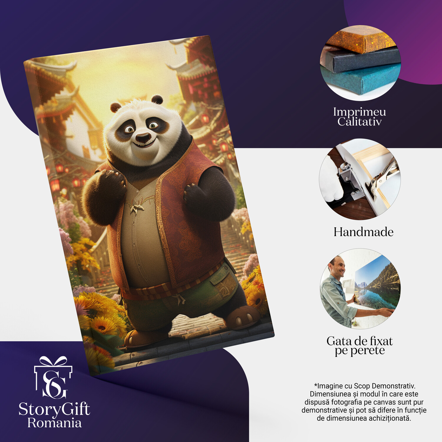 Tablou Canvas: Ursul Panda pregatit de Kung Fu langa Templele Chinezesti in Costum Specific Zonei Pictura Digitala - Tablou Canvas Signature de la StoryGift Romania