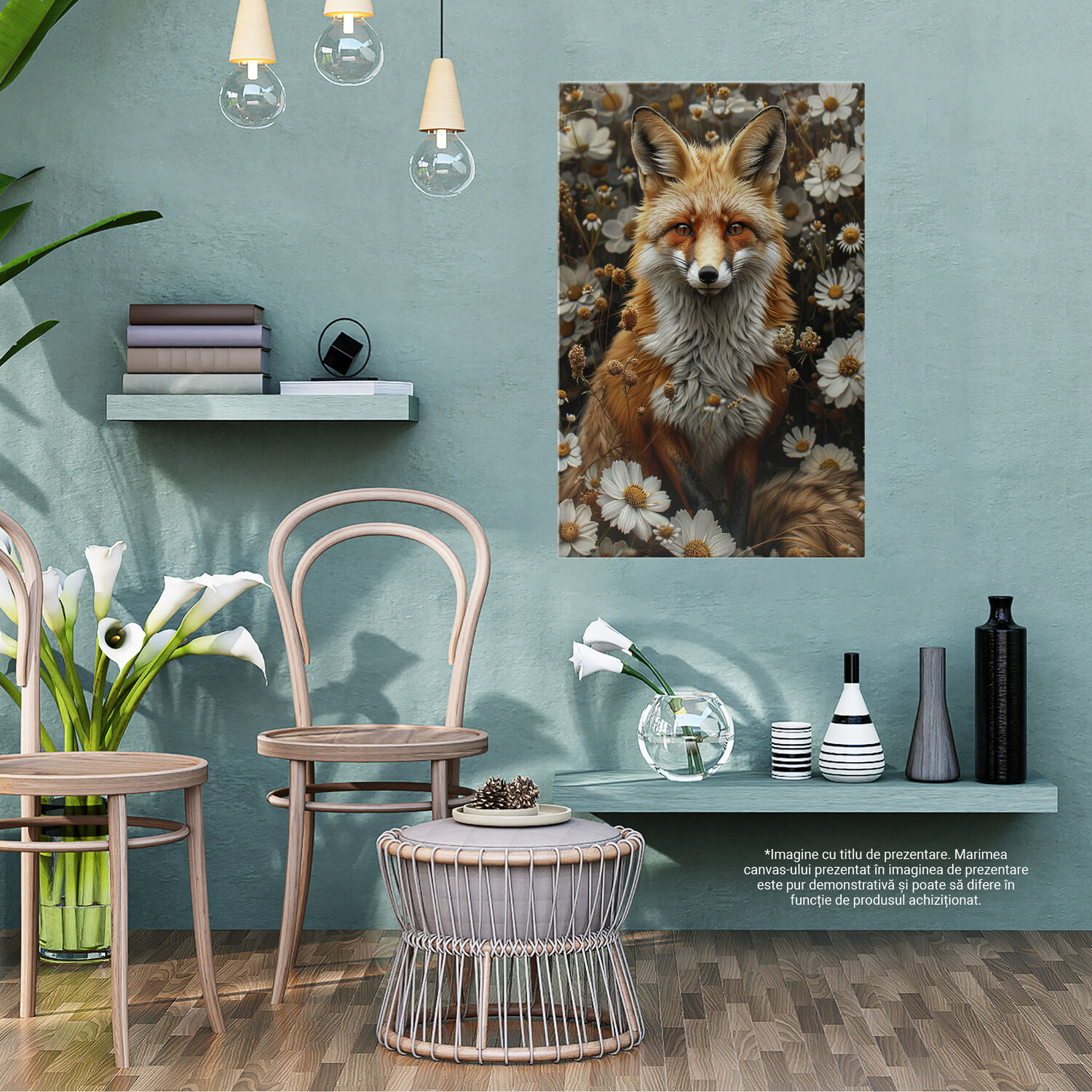 Tablou Canvas: Vulpea, stapana intre florile campului - Gata sa-si apere florile Pictura Digitala - Tablou Canvas Signature de la StoryGift Romania