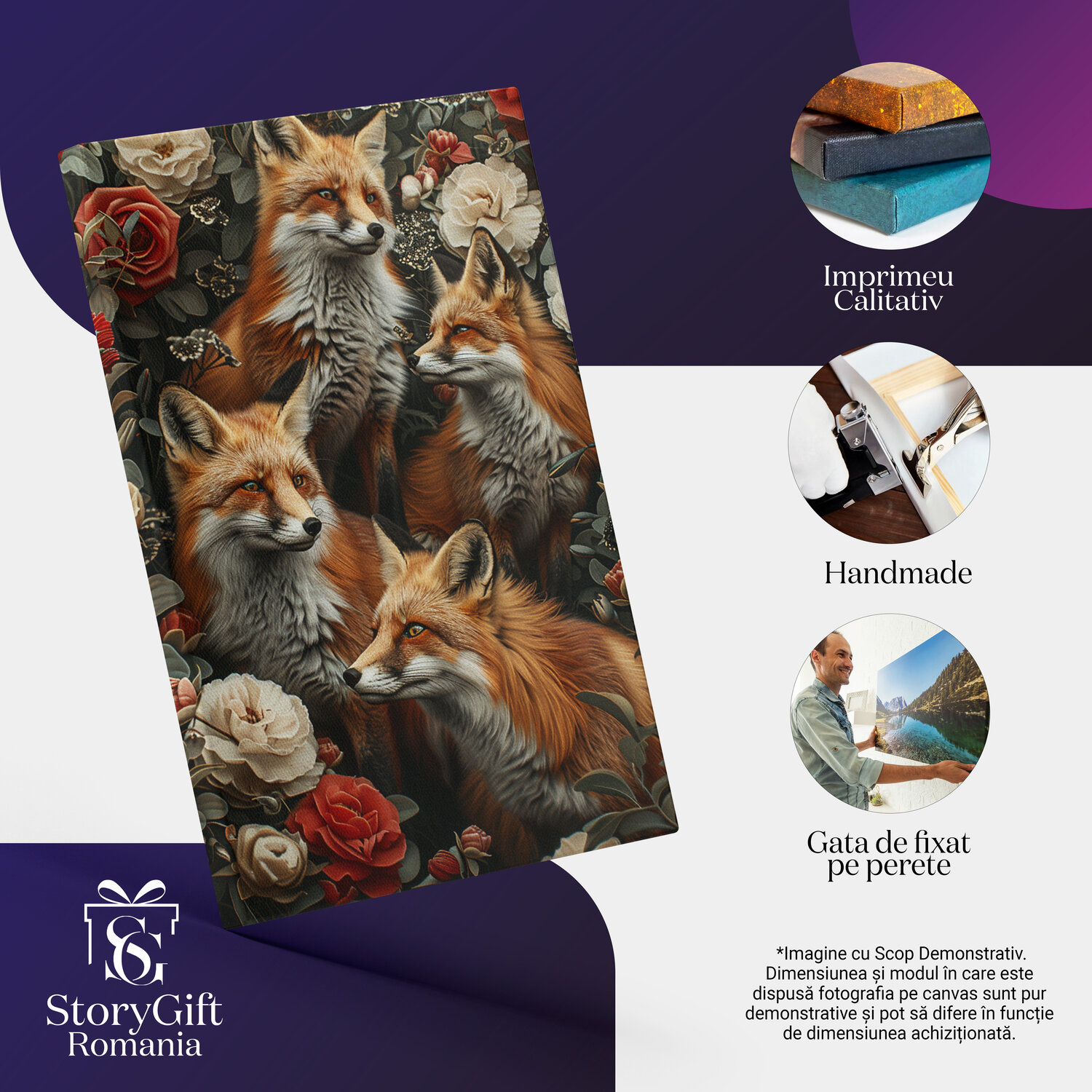 Notă importantă: Precizăm că imaginile de pe site au scop ilustrativ. Detaliile reale ale produsului pot prezenta diferențe minore față de reprezentările digitale, datorită variațiilor de culoare, mărimea tabloului și rezoluția dispozitivelor. Disponibilitatea în diverse dimensiuni ne permite să satisfacem nevoile dvs. specifice; pentru a vă asigura de alegerea potrivită, recomandăm măsurarea atentă a spațiului alocat.