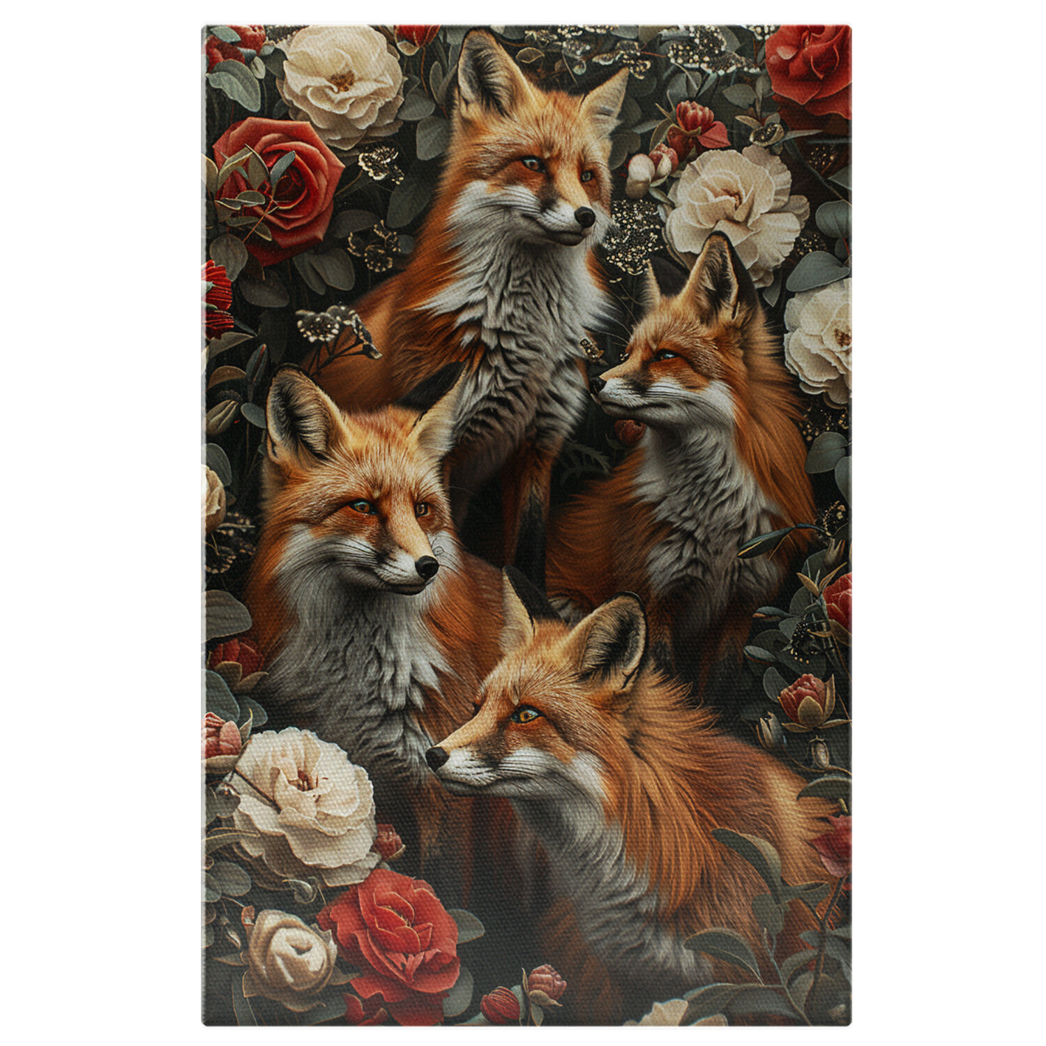 Tablou Canvas: Vulpi ce stau la panda pentru prada ascunse in flori -Natura prin flori si animale Pictura Digitala - Tablou Canvas Signature de la StoryGift Romania