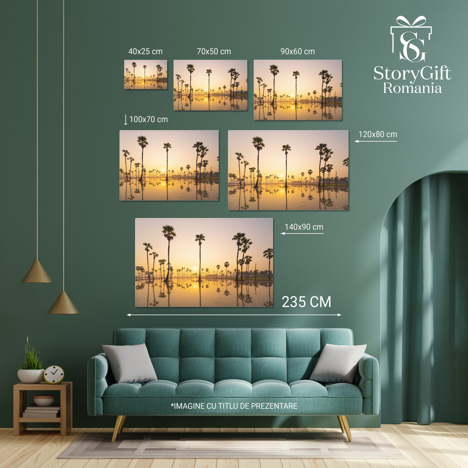 Notă importantă: Precizăm că imaginile de pe site au scop ilustrativ. Detaliile reale ale produsului pot prezenta diferențe minore față de reprezentările digitale, datorită variațiilor de culoare, mărimea tabloului și rezoluția dispozitivelor. Disponibilitatea în diverse dimensiuni ne permite să satisfacem nevoile dvs. specifice; pentru a vă asigura de alegerea potrivită, recomandăm măsurarea atentă a spațiului alocat.