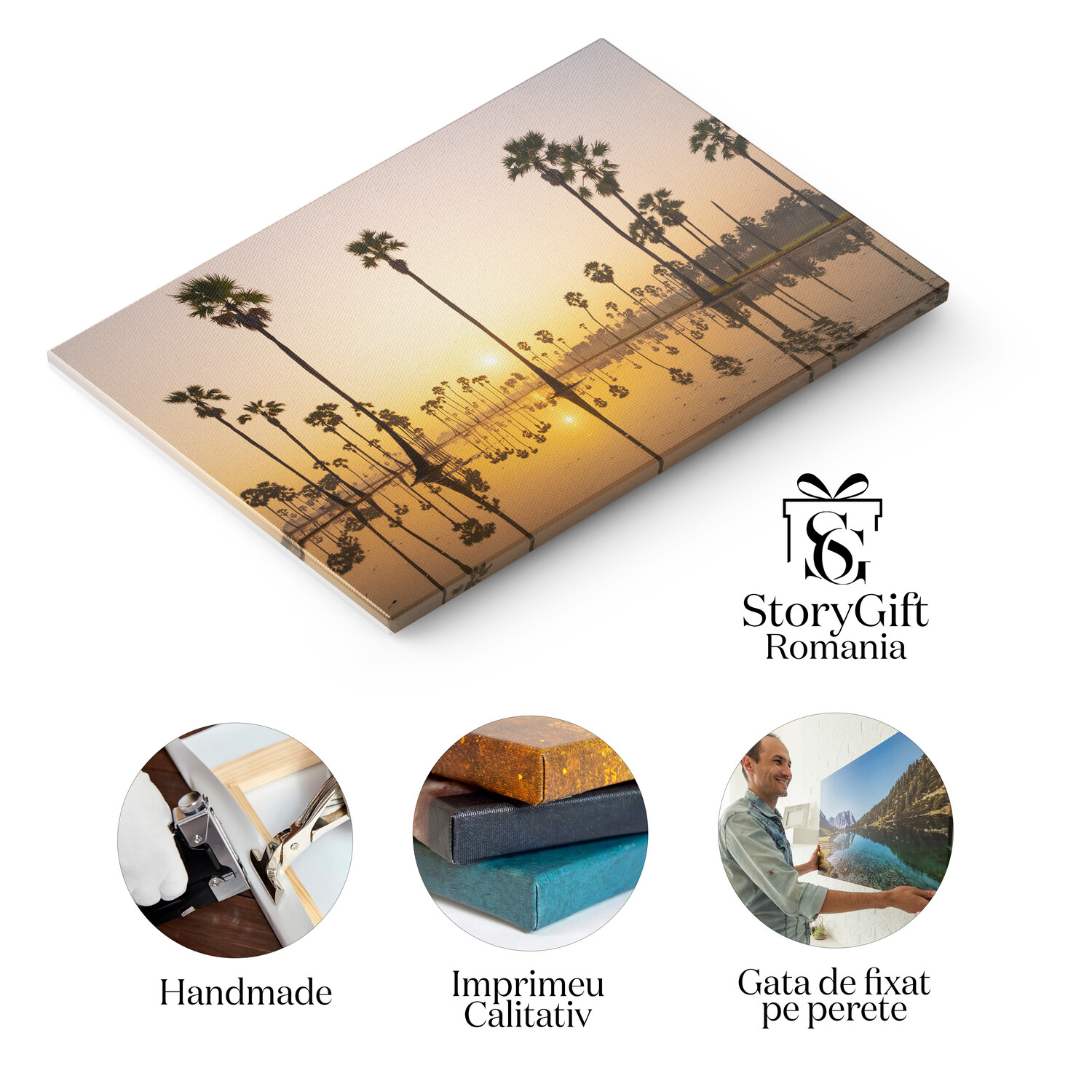 Tablou Canvas Peisaj plaja tropicala apus de soare palmieri - Tablou Canvas Signature de la StoryGift Romania