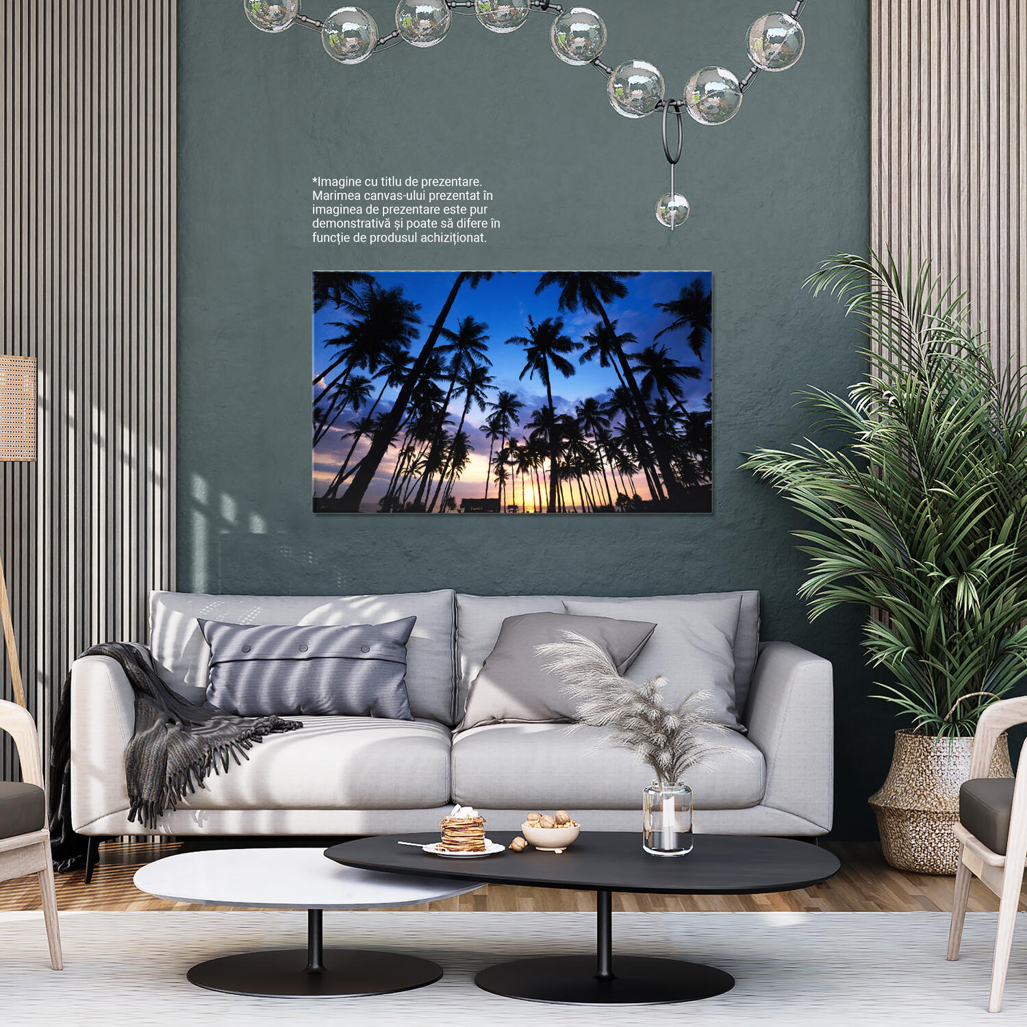 Tablou Canvas - Peisaj Tropic la Apus - Reflexii si Palmieri in Apa Linistita - Tablou Canvas Signature de la StoryGift Romania