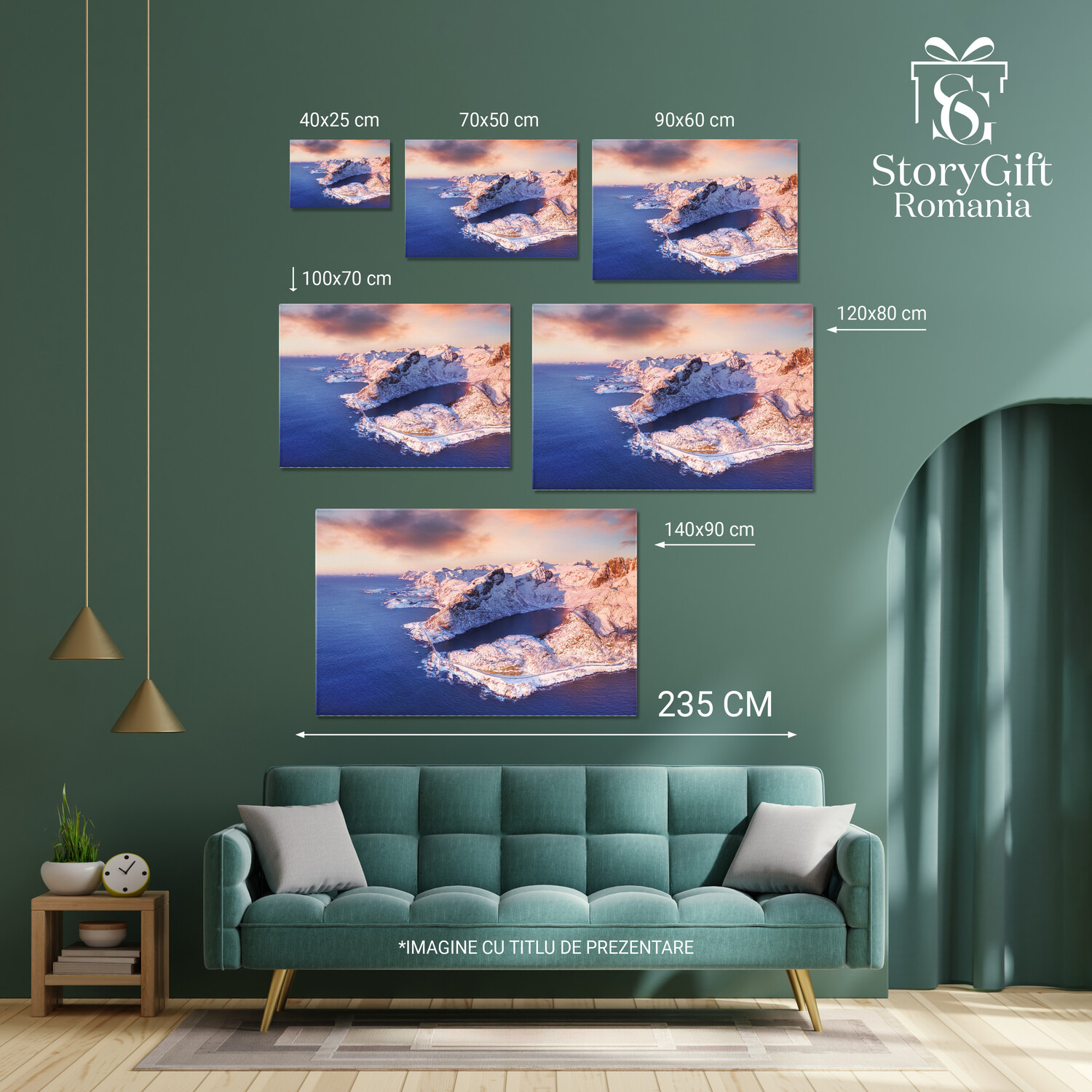 Notă importantă: Precizăm că imaginile de pe site au scop ilustrativ. Detaliile reale ale produsului pot prezenta diferențe minore față de reprezentările digitale, datorită variațiilor de culoare, mărimea tabloului și rezoluția dispozitivelor. Disponibilitatea în diverse dimensiuni ne permite să satisfacem nevoile dvs. specifice; pentru a vă asigura de alegerea potrivită, recomandăm măsurarea atentă a spațiului alocat.