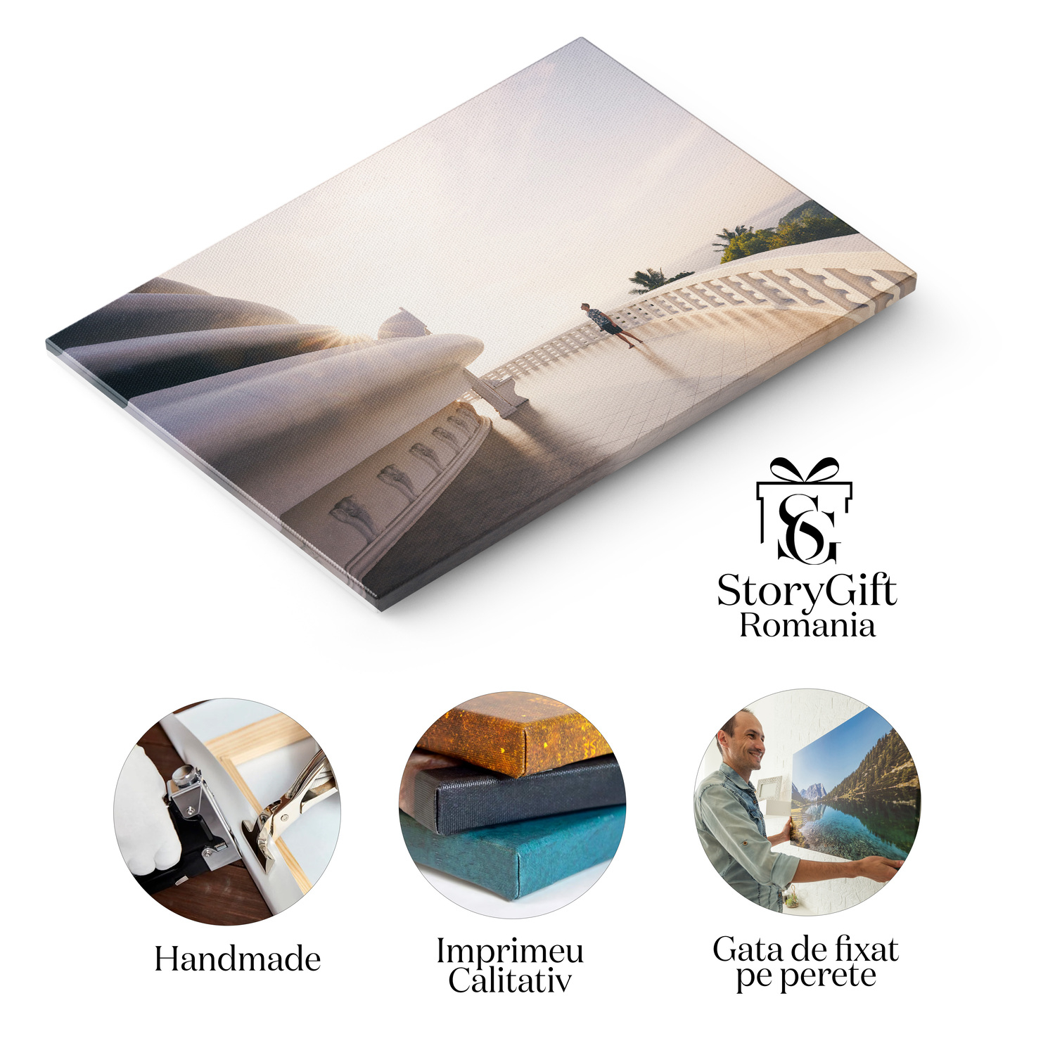 Construcția meticuloasă a tabloului evidențiază măiestria artizanală. Fiecare panză este manual tensionată pe un cadru de lemn, având colțurile rafinat finisate, oferind durabilitate și eleganță inconfundabilă.Când vine vorba de livrare, nu compromitem. Fiecare tablou este ambalat meticulos în protecții de lux și carton rigid, asigurând că tabloul ajunge în perfectă integritate la destinație.