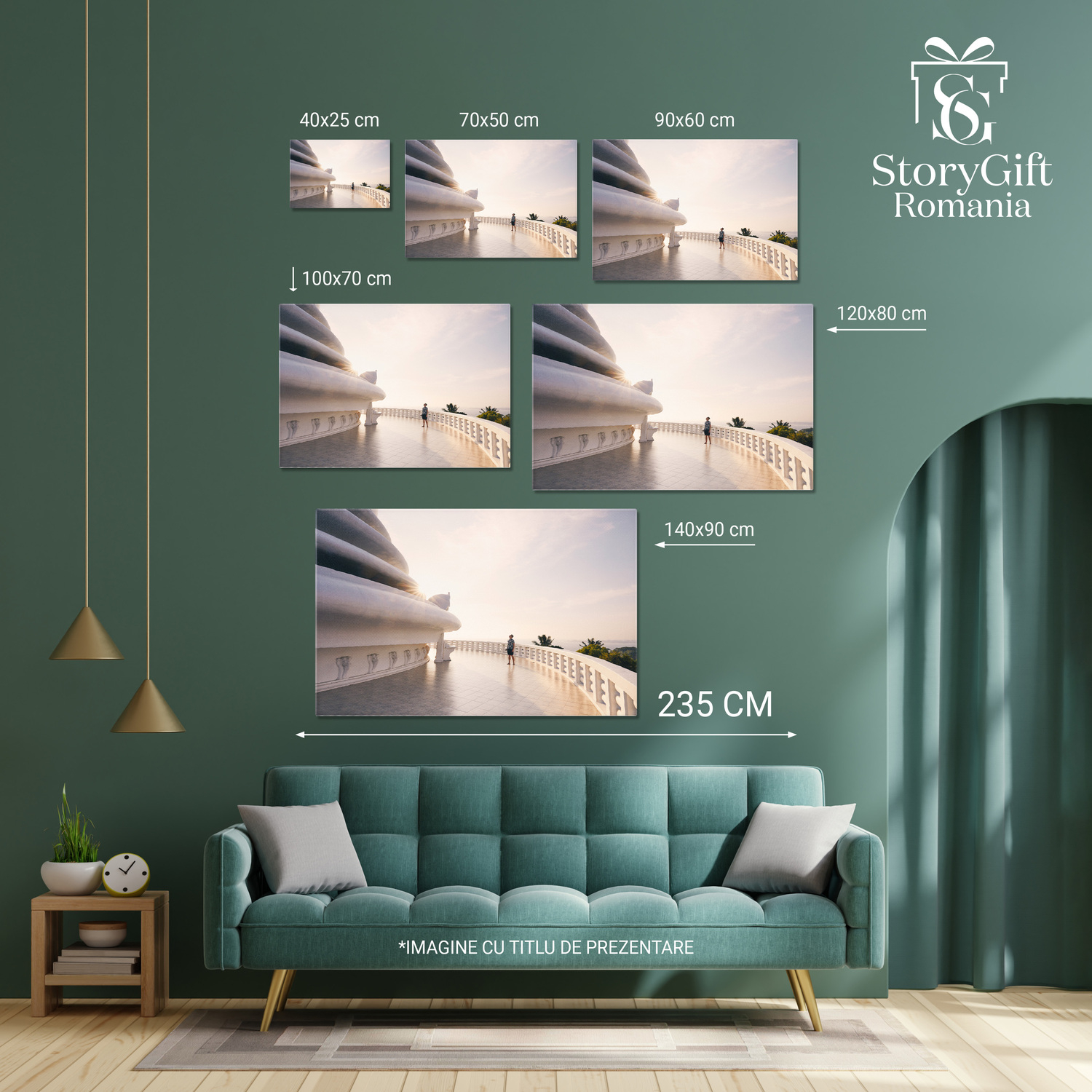 Notă importantă: Precizăm că imaginile de pe site au scop ilustrativ. Detaliile reale ale produsului pot prezenta diferențe minore față de reprezentările digitale, datorită variațiilor de culoare, mărimea tabloului și rezoluția dispozitivelor. Disponibilitatea în diverse dimensiuni ne permite să satisfacem nevoile dvs. specifice; pentru a vă asigura de alegerea potrivită, recomandăm măsurarea atentă a spațiului alocat.
