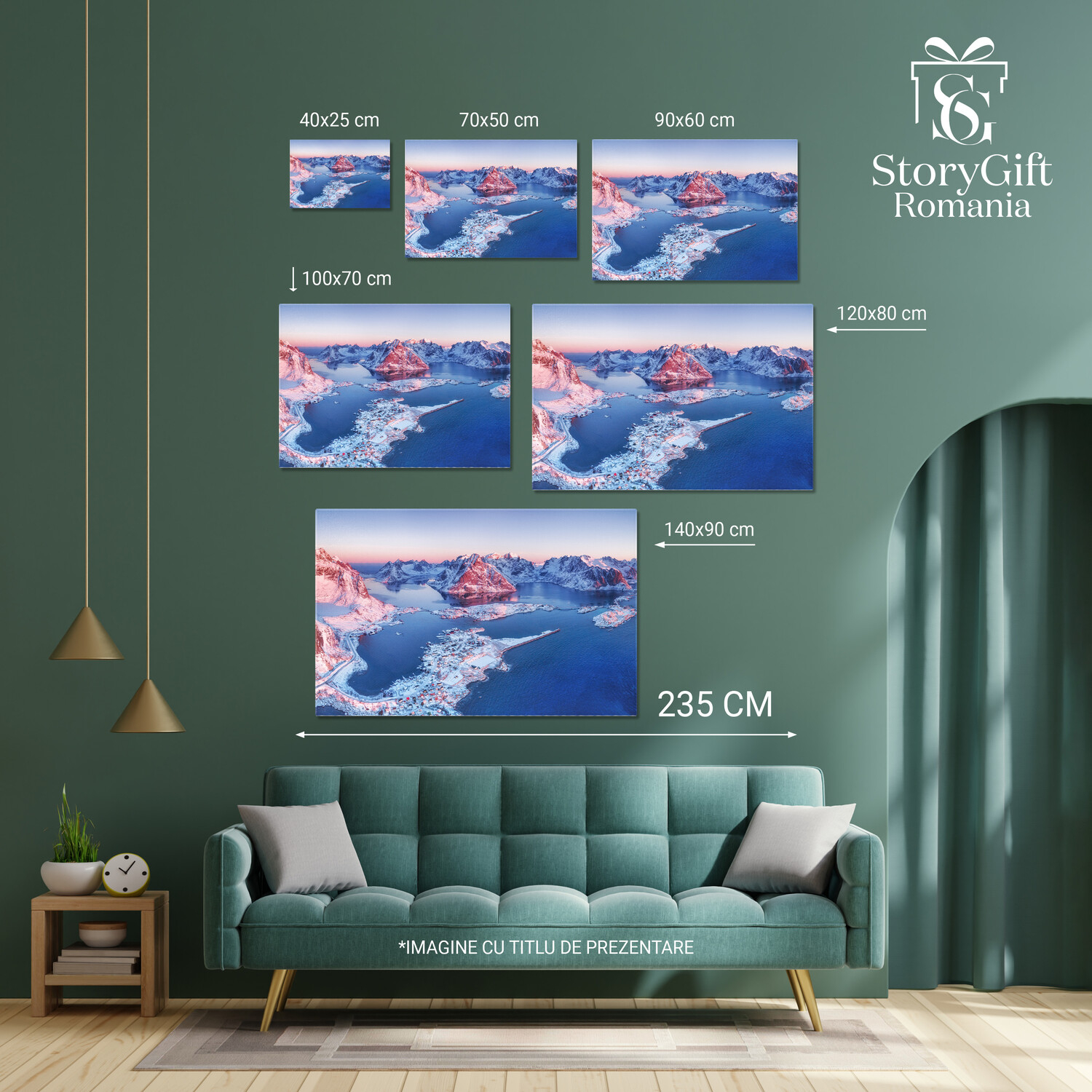 Notă importantă: Precizăm că imaginile de pe site au scop ilustrativ. Detaliile reale ale produsului pot prezenta diferențe minore față de reprezentările digitale, datorită variațiilor de culoare, mărimea tabloului și rezoluția dispozitivelor. Disponibilitatea în diverse dimensiuni ne permite să satisfacem nevoile dvs. specifice; pentru a vă asigura de alegerea potrivită, recomandăm măsurarea atentă a spațiului alocat.
