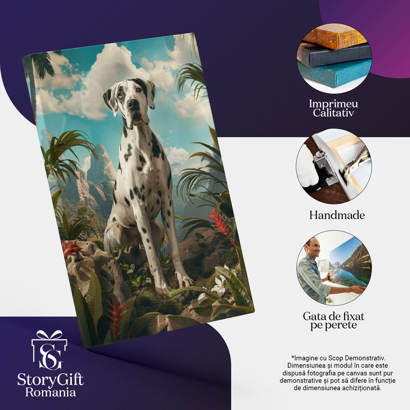 Tablou Canvas Forța Munților din Junglă și Dalmațianul ce Admiră în Liniște Frumusețea Vegetală , Pictura Digitala 40x25CM